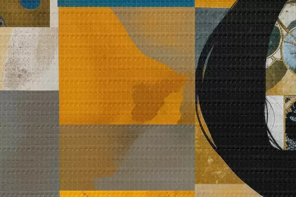 Kép Absztrakt geometriai kompozíció nőkkel és különböző formákkal, textúrákkal és színekkel Nr r40016