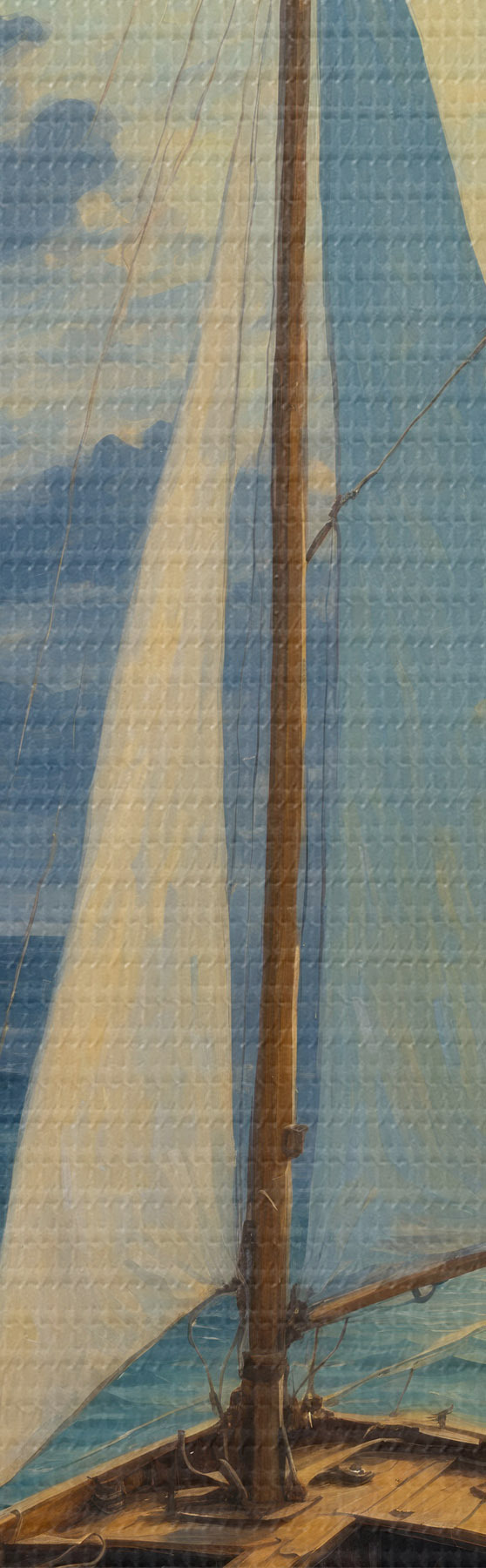 Ahhoz, hogy a vásznat a feszítőrúdra feszítsük anélkül, hogy a kép megsérülne, tükrözött képet használunk.