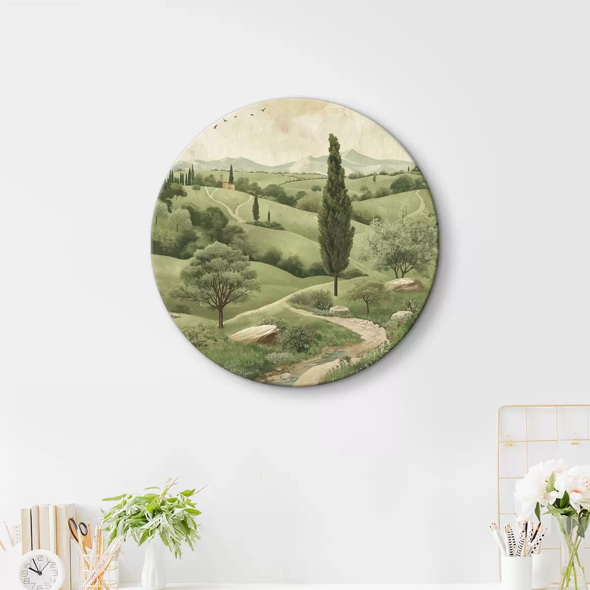 Kép Toszkána táj, vintage stílus, pasztell zöld színek, dombok és fák Nr r40075