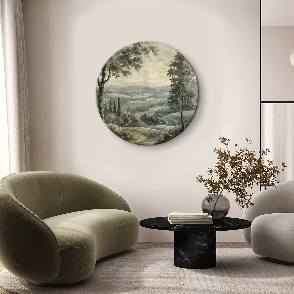 Kép Vintage olasz táj, rusztikus stílus, pasztell színek, dombok fákkal, boho Nr r40086