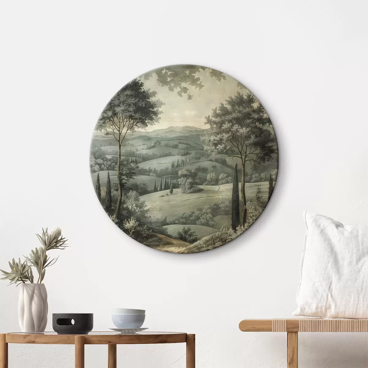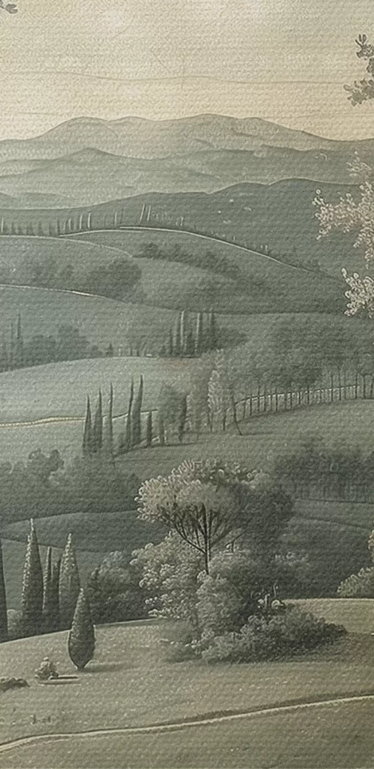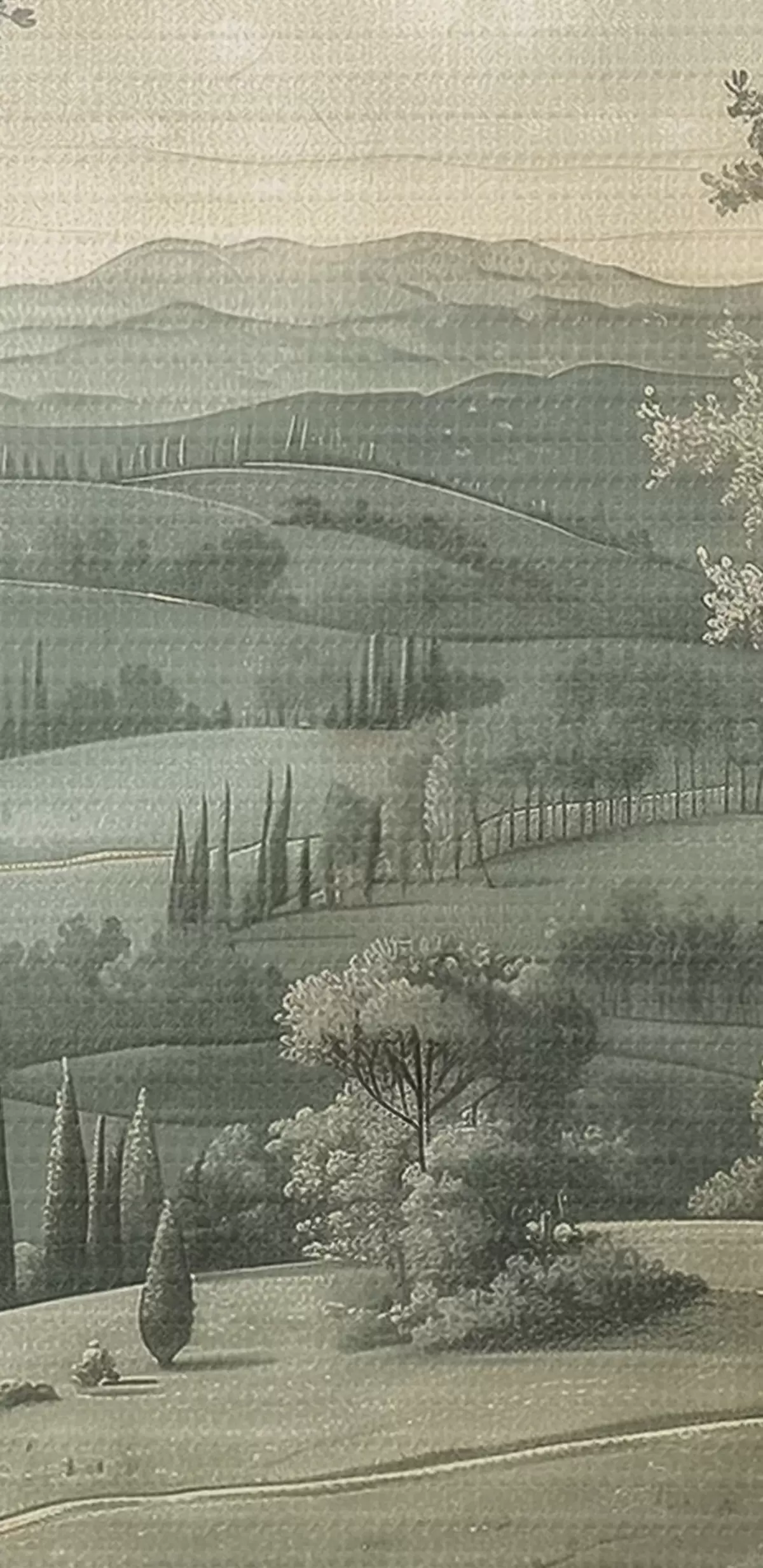 Kép Vintage nyári táj, rusztikus stílus, pasztell színek, dombok fákkal, boho Nr r40087
