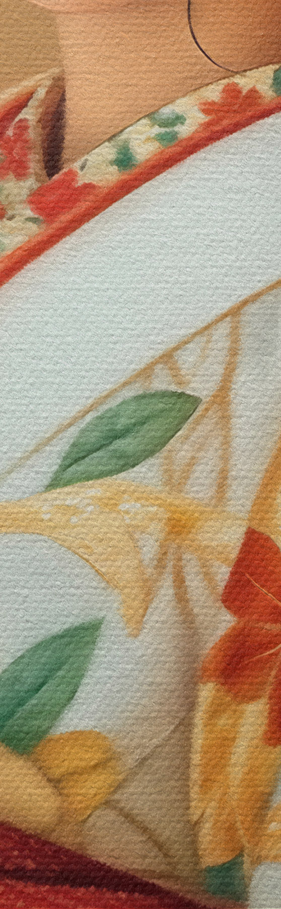 Ahhoz, hogy a vásznat a feszítőrúdra feszítsük anélkül, hogy a kép megsérülne, tükrözött képet használunk.