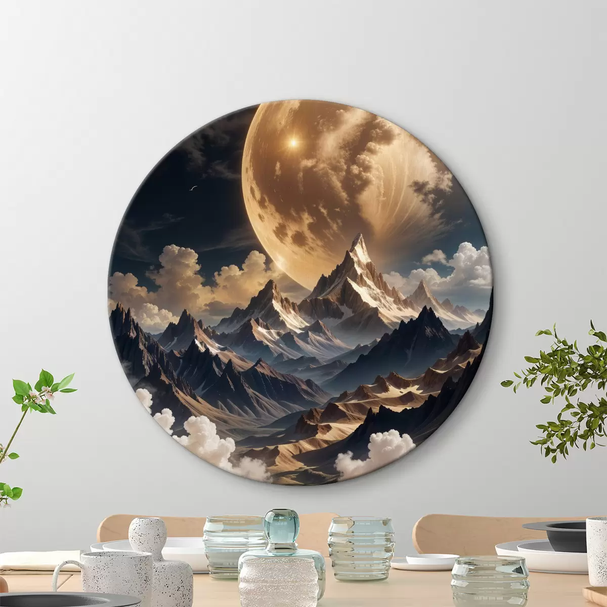 Kép Szürreális táj hófödte hegyekkel a hatalmas telihold alatt, szeles felhőkkel Nr r40147