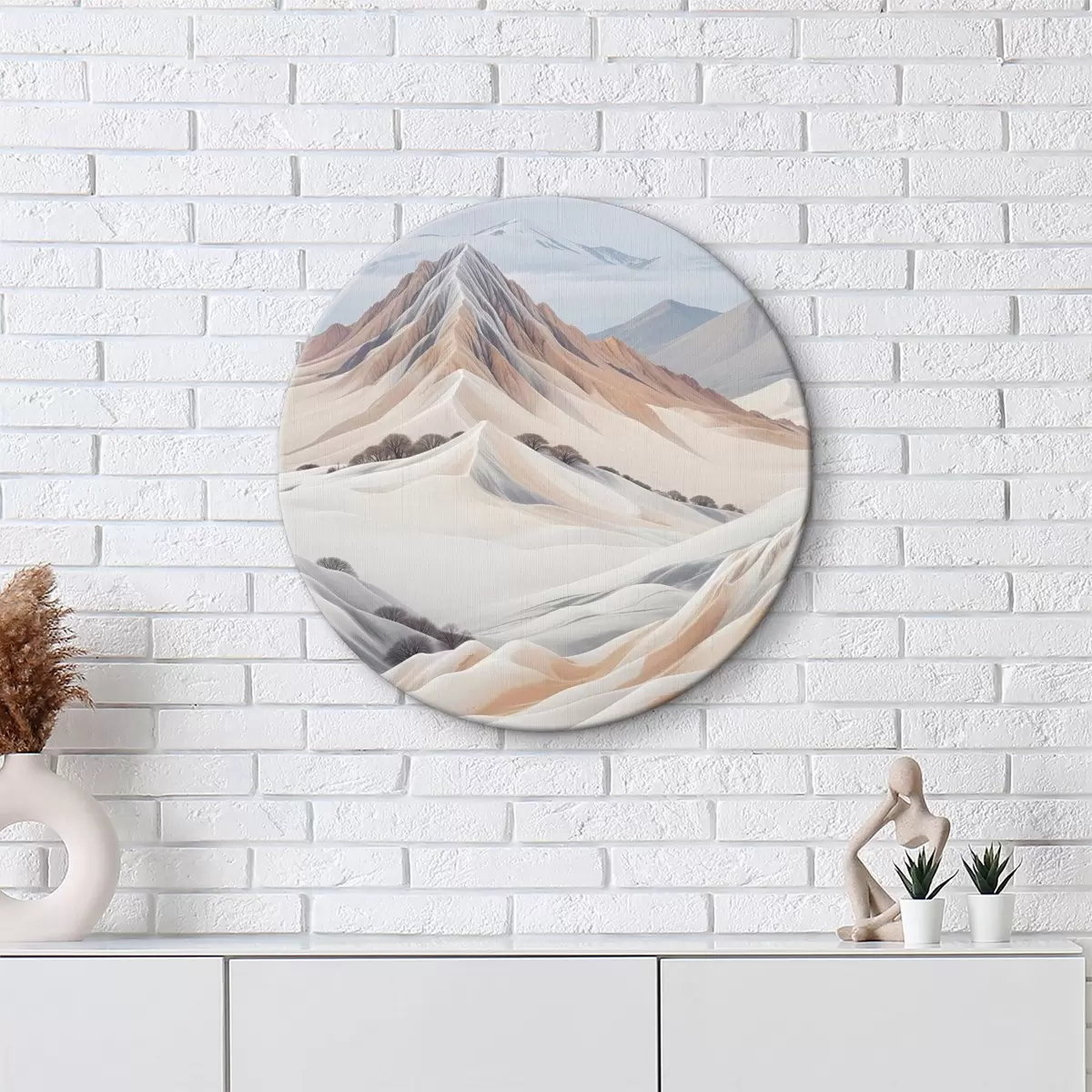 Kép Hatalmas sivatagi táj hullámzó homokdűnékkel és távoli hófödte hegyekkel a ködös égbolt alatt Nr r40173