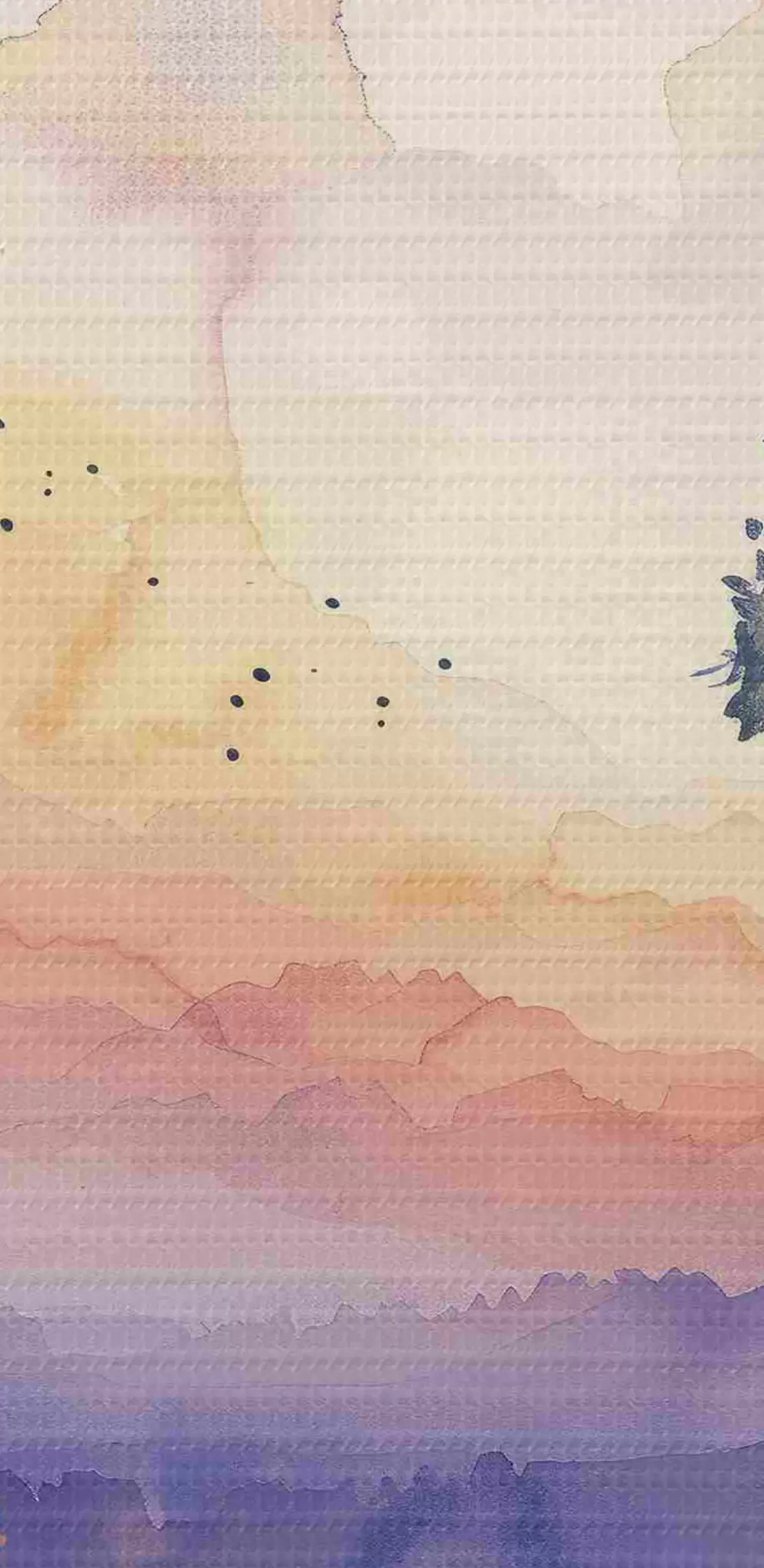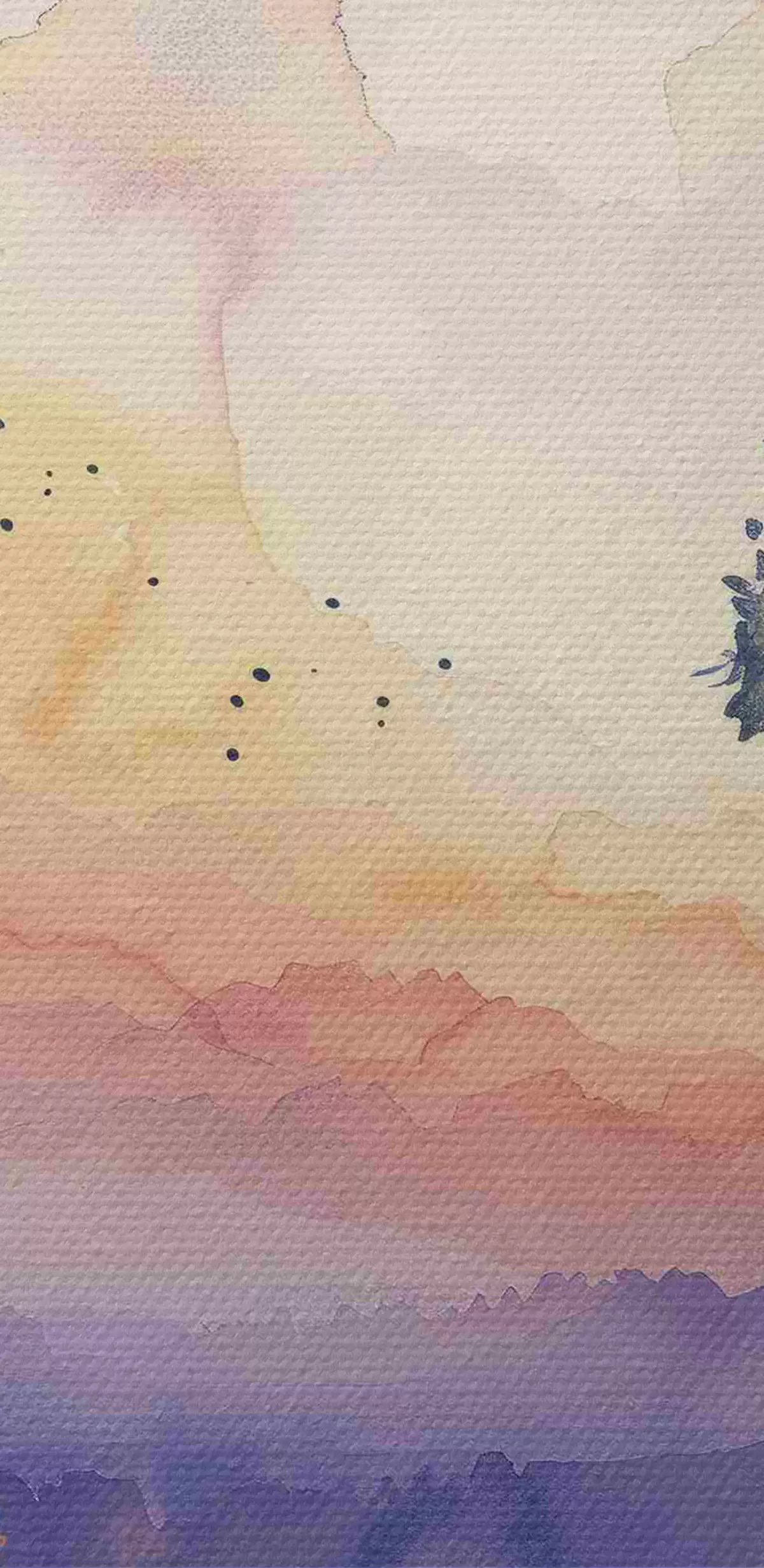 Kép Akvarell erdő, naplemente, faágak, lila és narancssárga színben Nr r40304