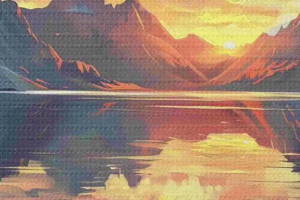 Kép Naplemente a hegyekben, folyó, természeti tájak, akril festék Nr r40306