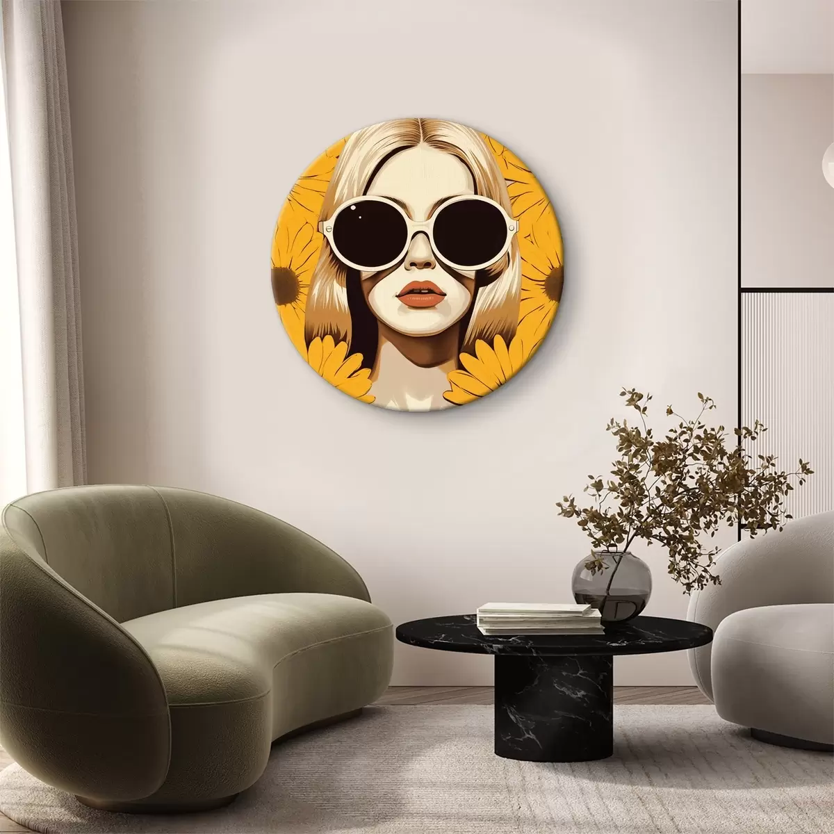 Kép Lány nagy napszemüveg körül sárga százszorszépek retro stílusban Nr r40317