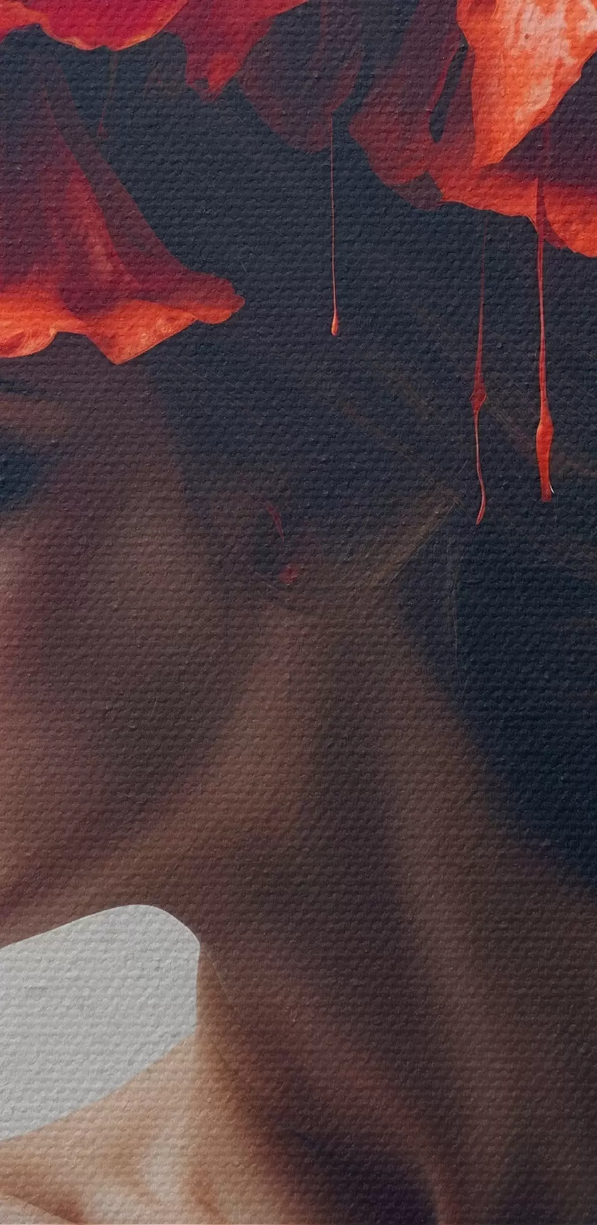 Ahhoz, hogy a vásznat a feszítőrúdra feszítsük anélkül, hogy a kép megsérülne, tükrözött képet használunk.