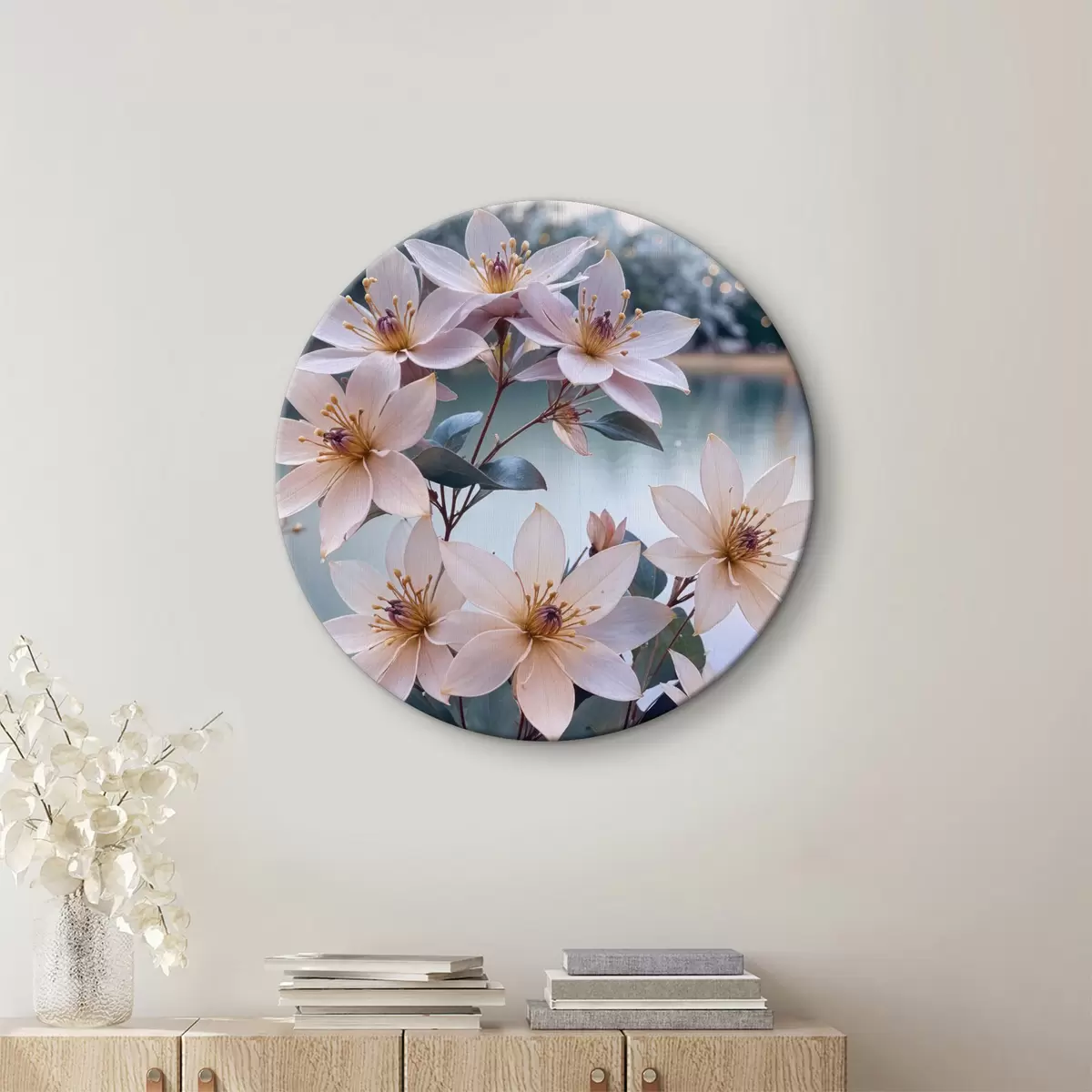 Kép Finom rózsaszín lótuszvirágok lebegnek egy nyugodt vízen, fák és lombok elmosódott hátterével Nr r40388
