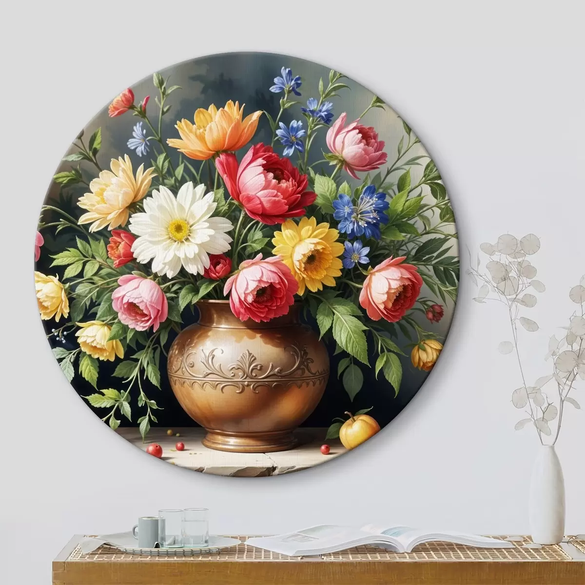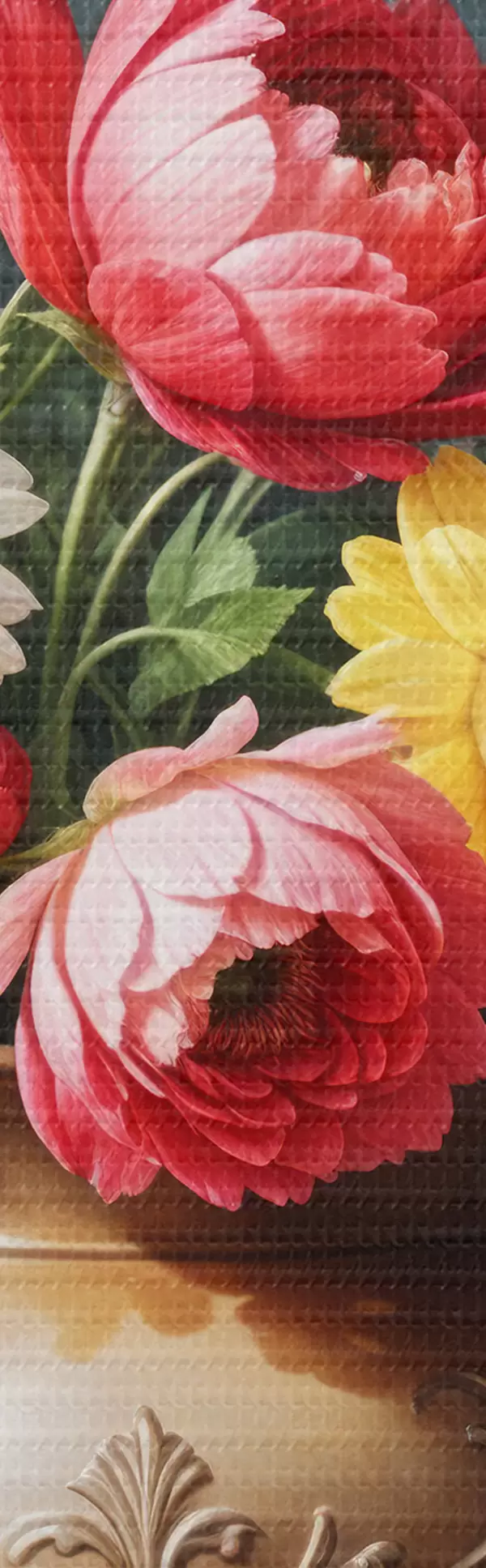 Kép Egy élénk festmény egy csokor színes virágokról, köztük vörös rózsákról, sárga nárciszokról és fehér százszorszépekről Nr r40395