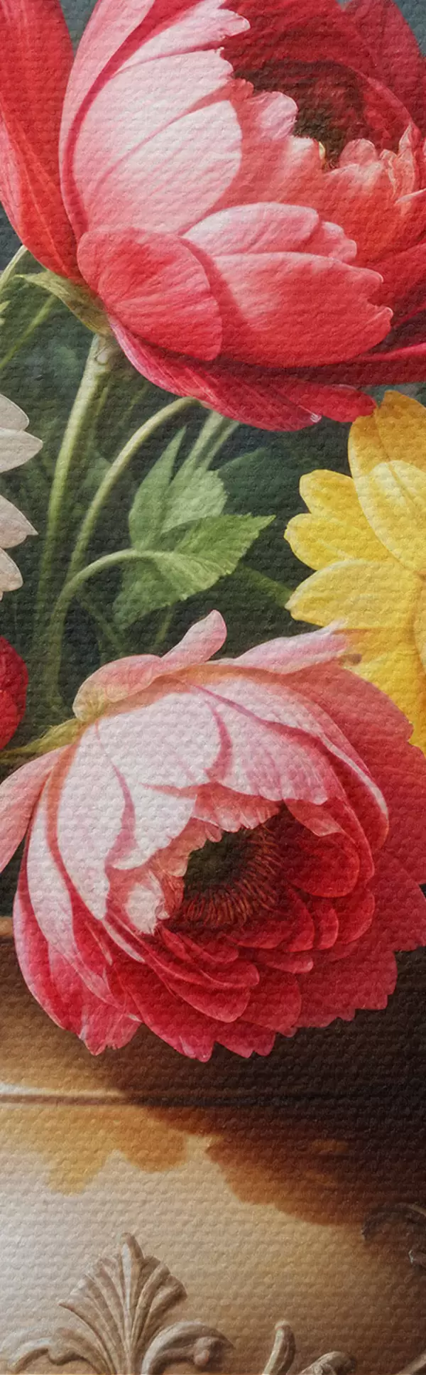 Háromféle anyagtípus rendelhető: Economic Canvas - sűrű és tartós anyag digitális nyomtatáshoz, a festővászonnal megegyező, vízálló felületű, a részletek valósághű reprodukciójával, közepes szemcsézettségű anyag. Premium Canvas - a textúra hasonlít a festővászonra (egymásba fonódó apró szálak). Puha, részletgazdag képreprodukció matt felületen. Eco-Premium - kiváló minőségű 100% pamutszövet. A természetes pamutszálaknak köszönhetően az anyag tartós és kopásálló. Kiváló színvisszaadás és részletesség.