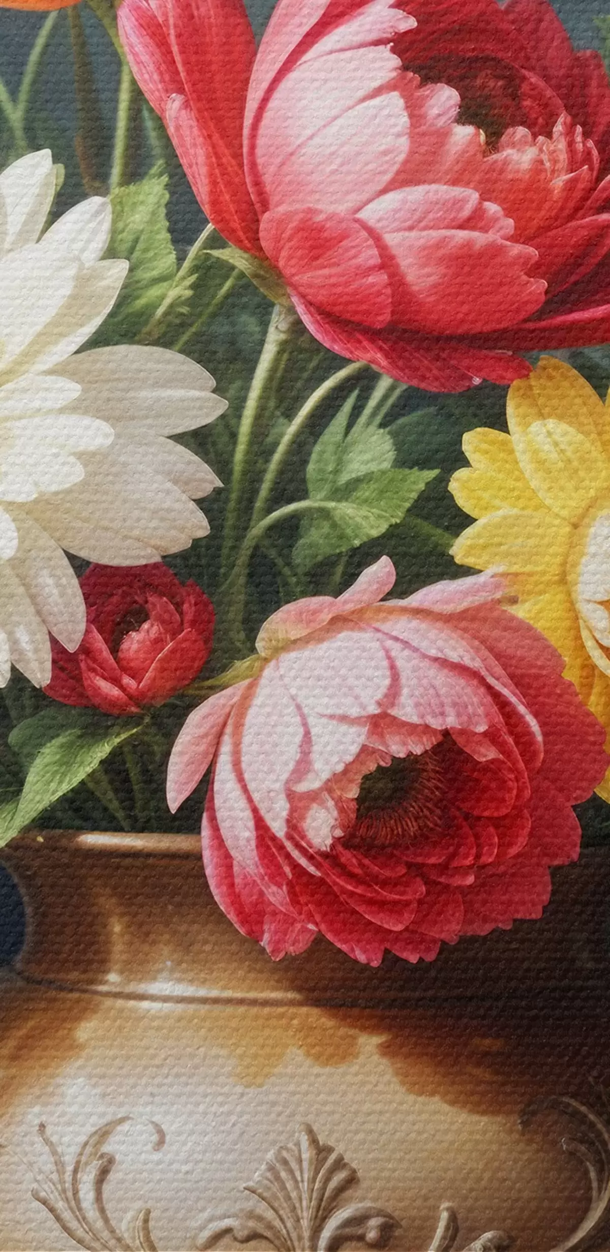 Háromféle anyagtípus rendelhető: Economic Canvas - sűrű és tartós anyag digitális nyomtatáshoz, a festővászonnal megegyező, vízálló felületű, a részletek valósághű reprodukciójával, közepes szemcsézettségű anyag. Premium Canvas - a textúra hasonlít a festővászonra (egymásba fonódó apró szálak). Puha, részletgazdag képreprodukció matt felületen. Eco-Premium - kiváló minőségű 100% pamutszövet. A természetes pamutszálaknak köszönhetően az anyag tartós és kopásálló. Kiváló színvisszaadás és részletesség.