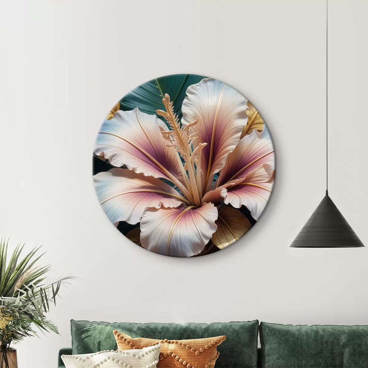 Kép Élénk, sokszínű trópusi hibiszkuszvirág nagy, bonyolult szirmokkal, rózsaszín, fehér és sárga árnyalatokban Nr r40399