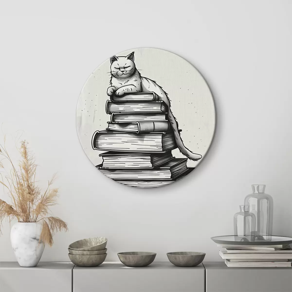 Kép Fekete-fehér macska egy halom könyvön Nr r40435