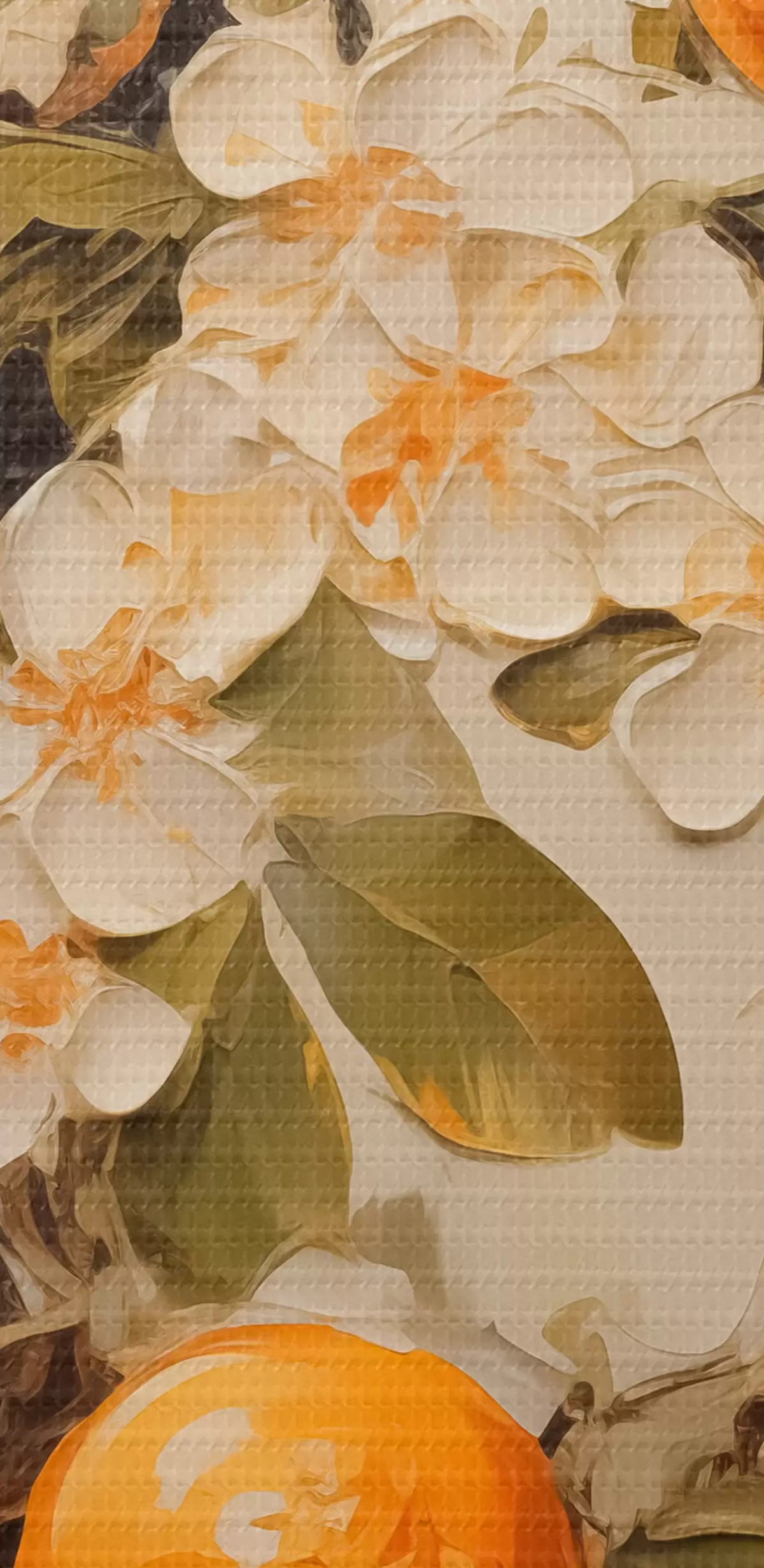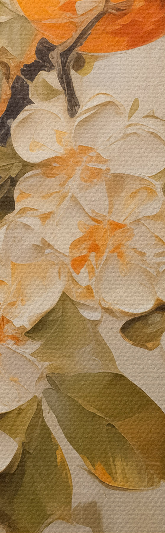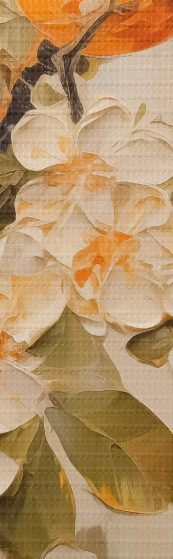 Kép Szürke-bézs alapon fehér virágokkal és narancssárga ág Nr r40486