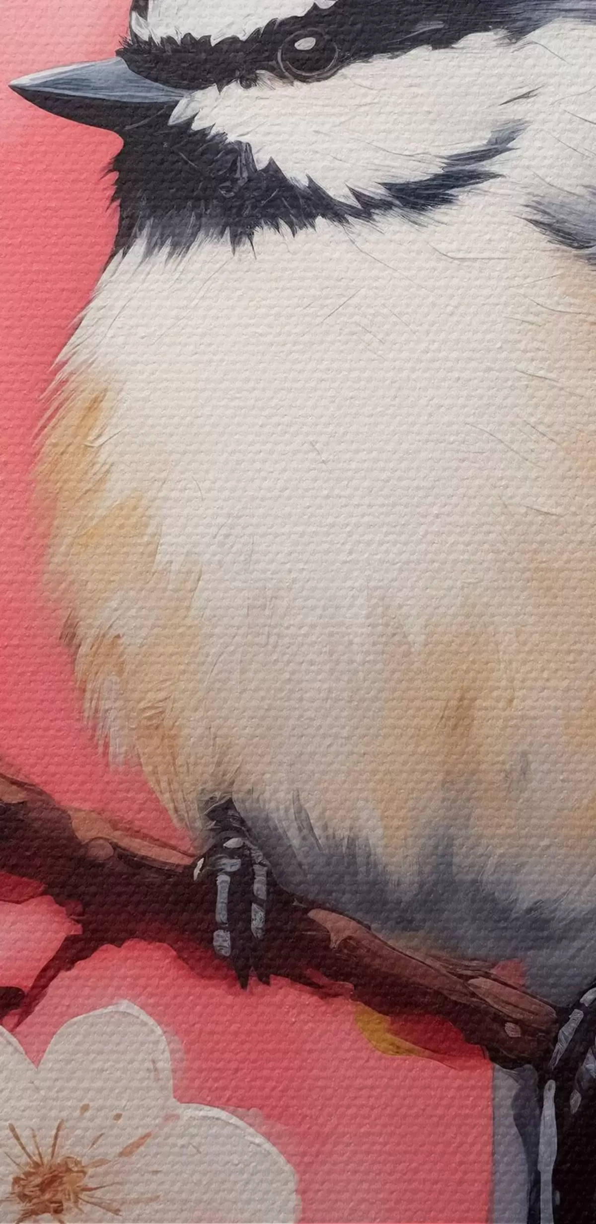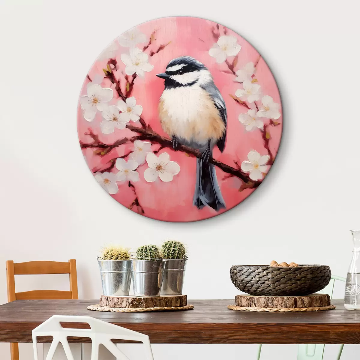 Kép A madár egy ágon ül, fehér virágokkal, rózsaszín háttérrel Nr r40517