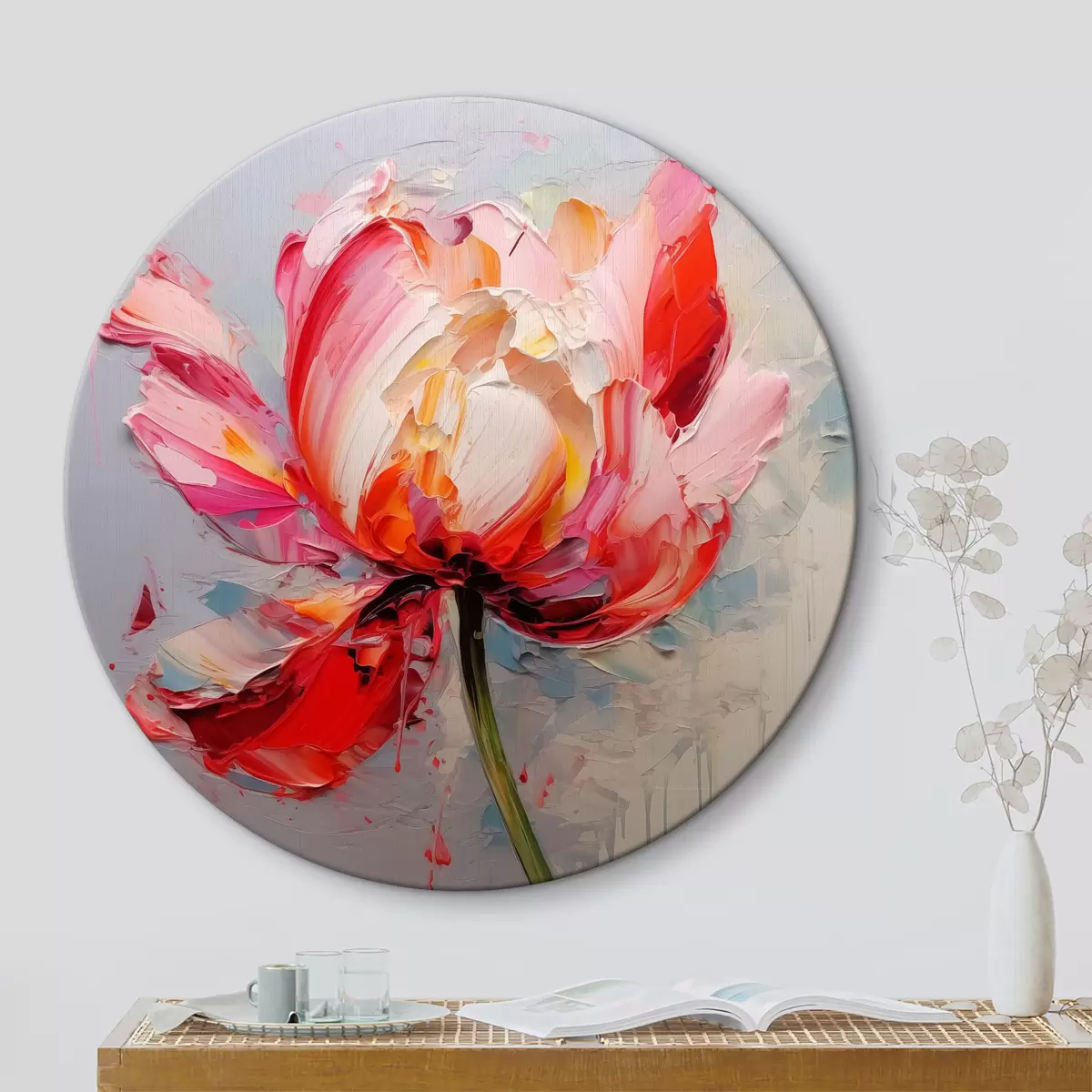 Kép Virágzó tulipán, piros, rózsaszín, szürke színben Nr r40519