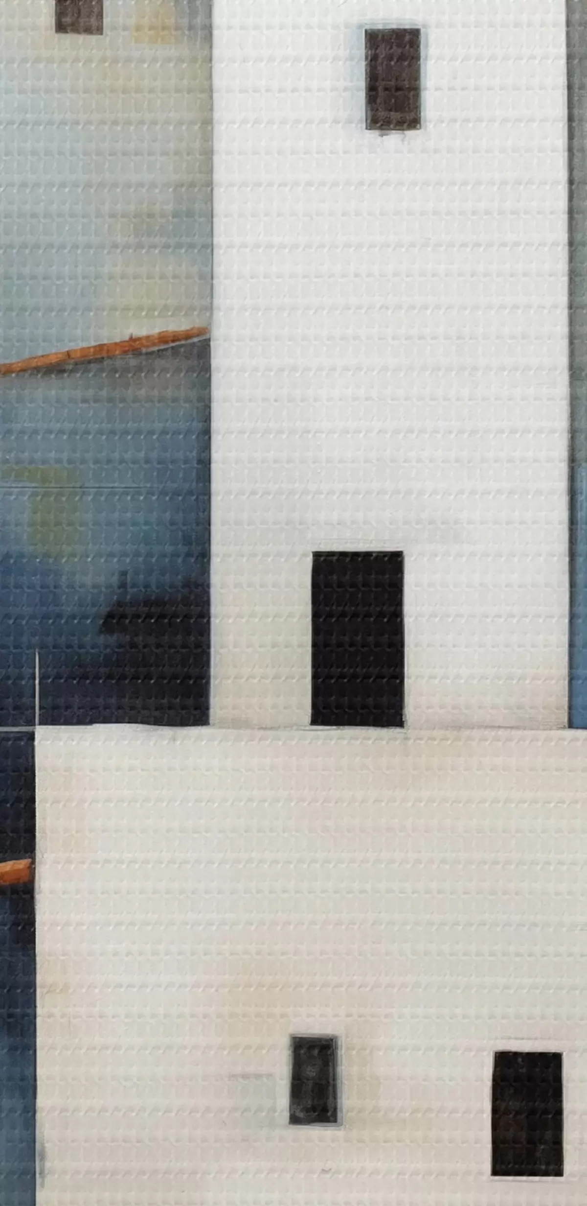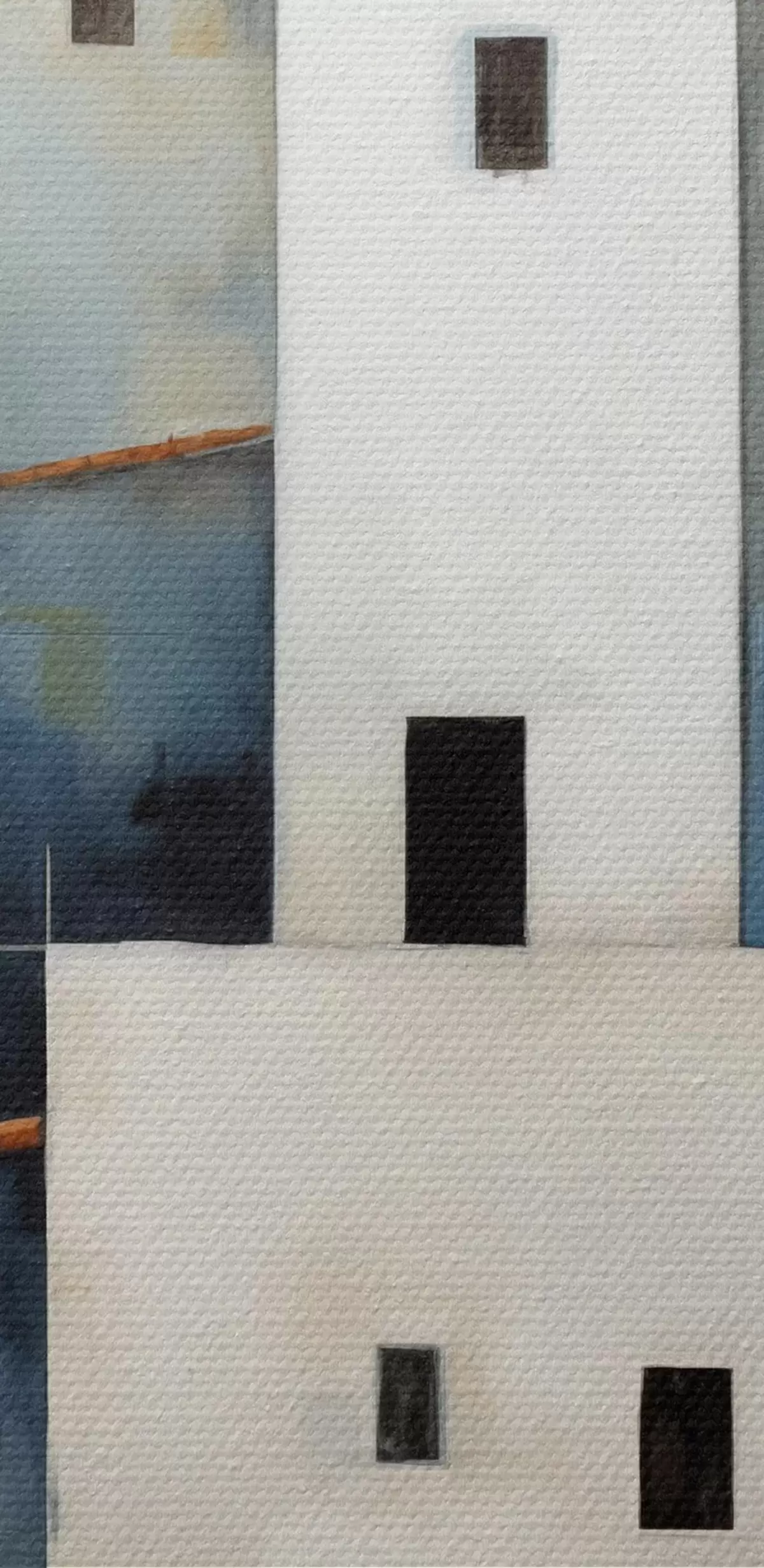 Kép Fehér stilizált absztrakt házak, piros, narancssárga, sárga, kék színben Nr r40531