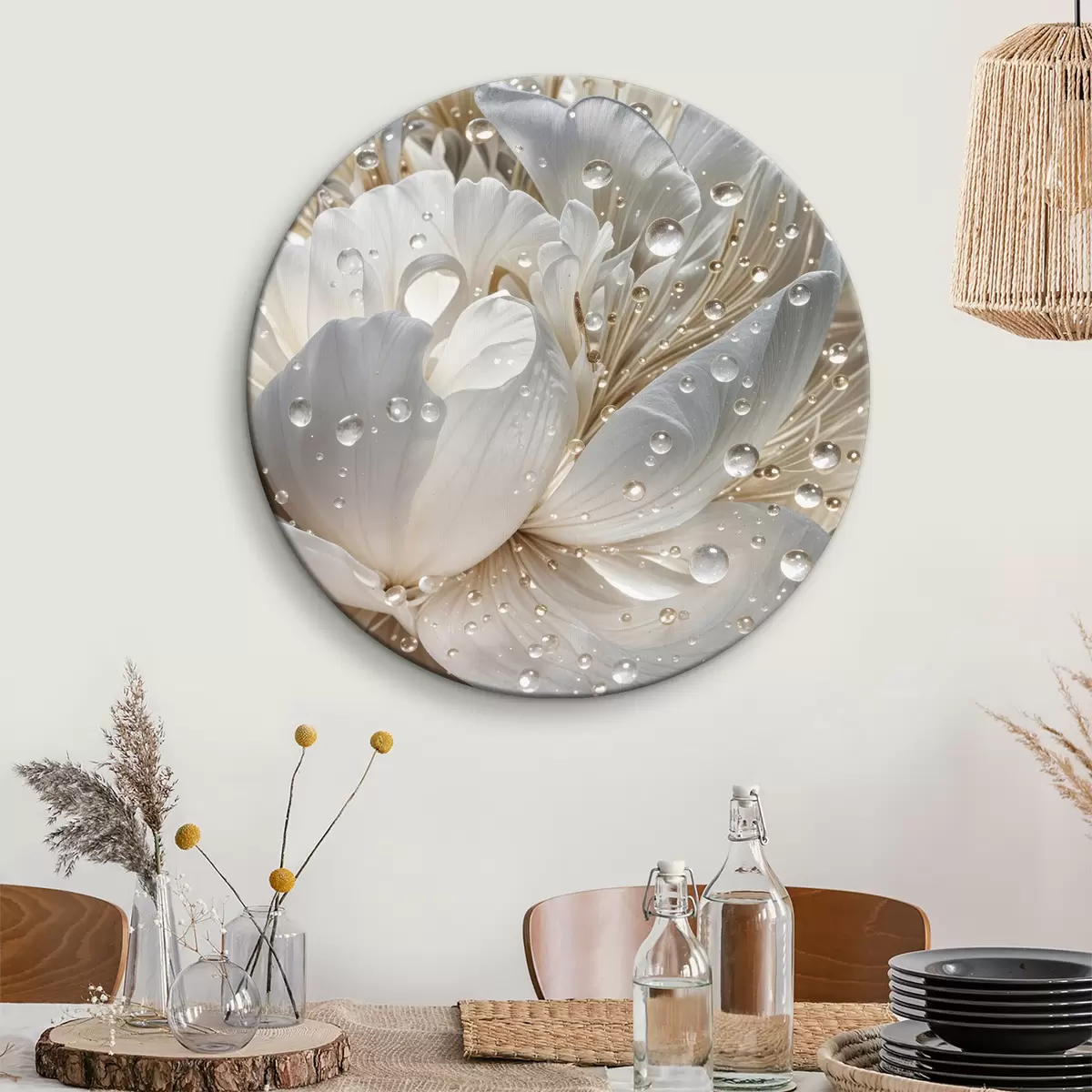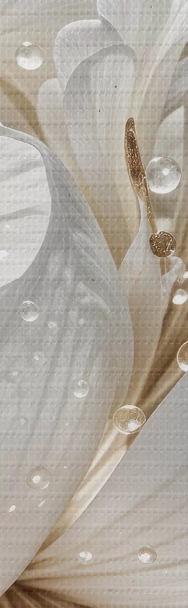 Kép Közelkép egy fehér bazsarózsa virágról, vízcseppekkel a szirmokon, elmosódott háttérrel Nr r40539