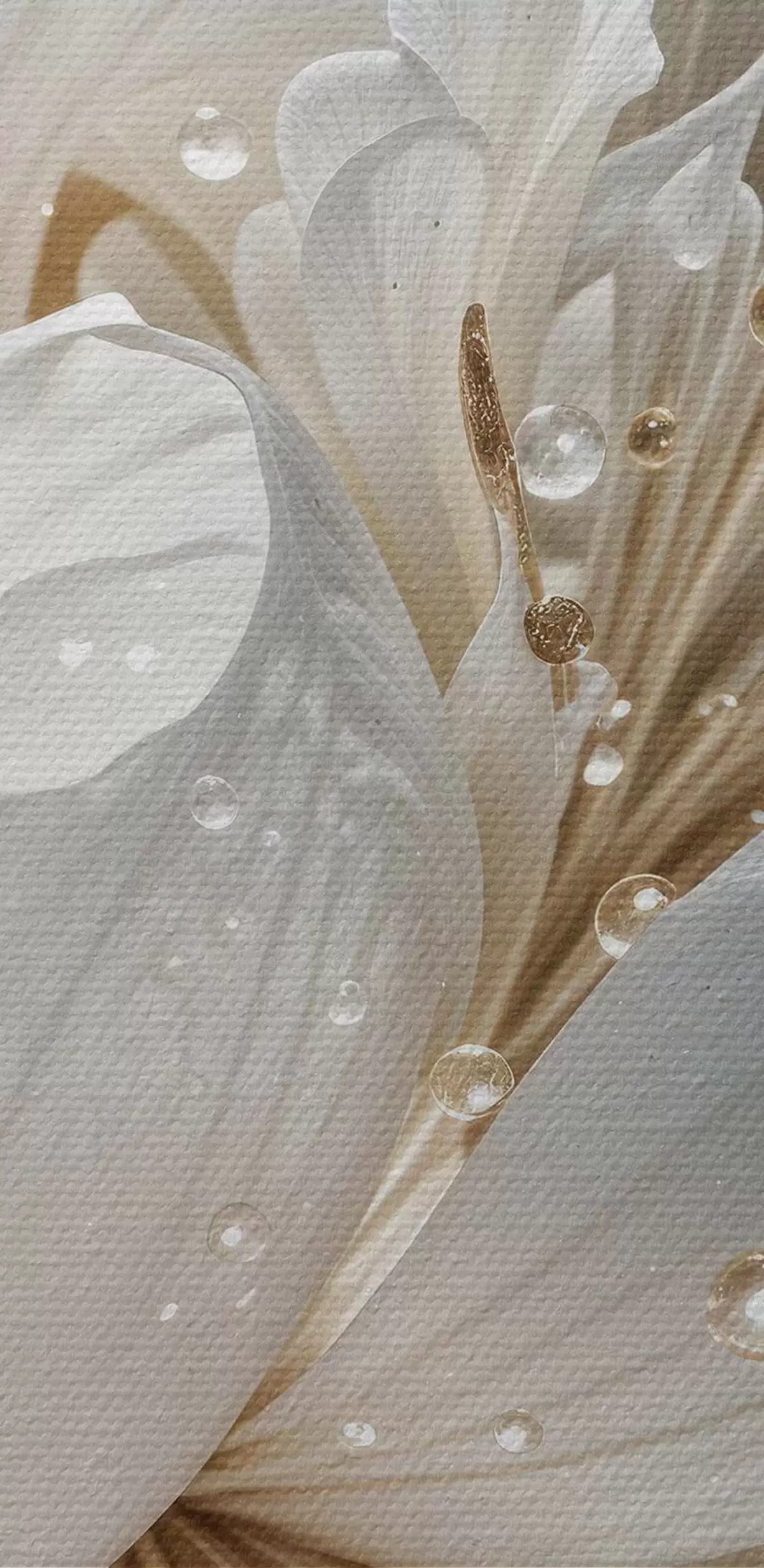 Kép Közelkép egy fehér bazsarózsa virágról, vízcseppekkel a szirmokon, elmosódott háttérrel Nr r40539