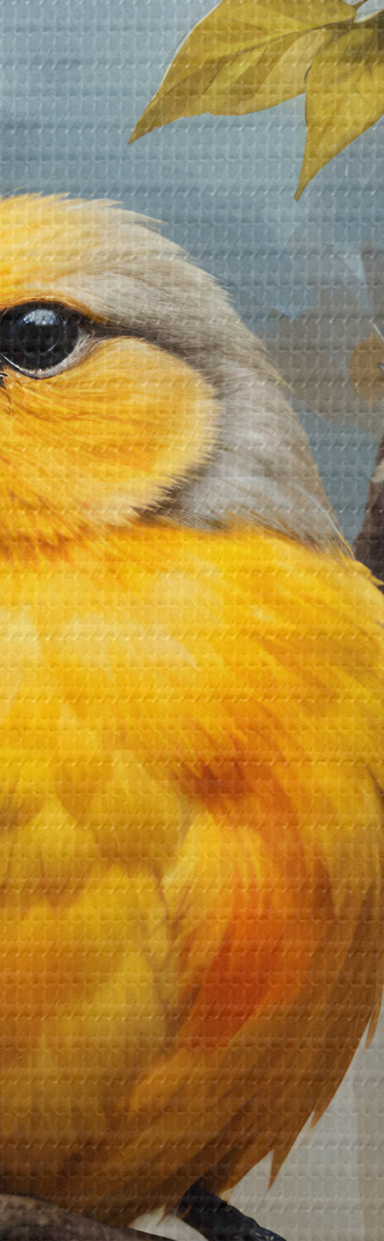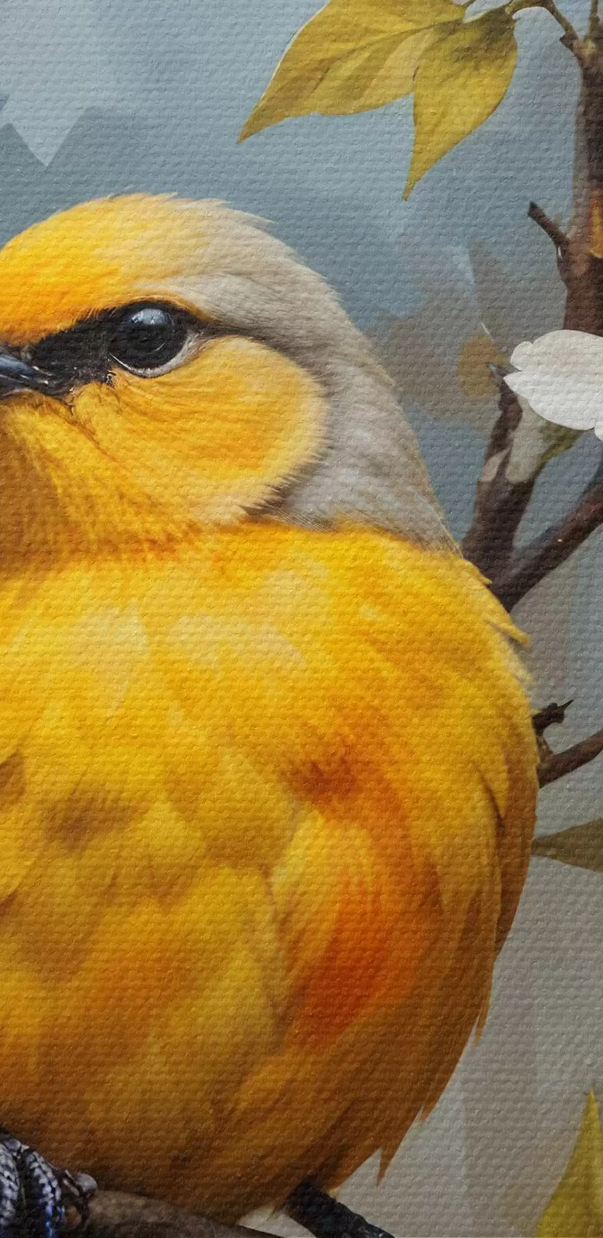 Kép Sárga madár ül egy ágon, a háttérben fehér és narancssárga virágok Nr r40550