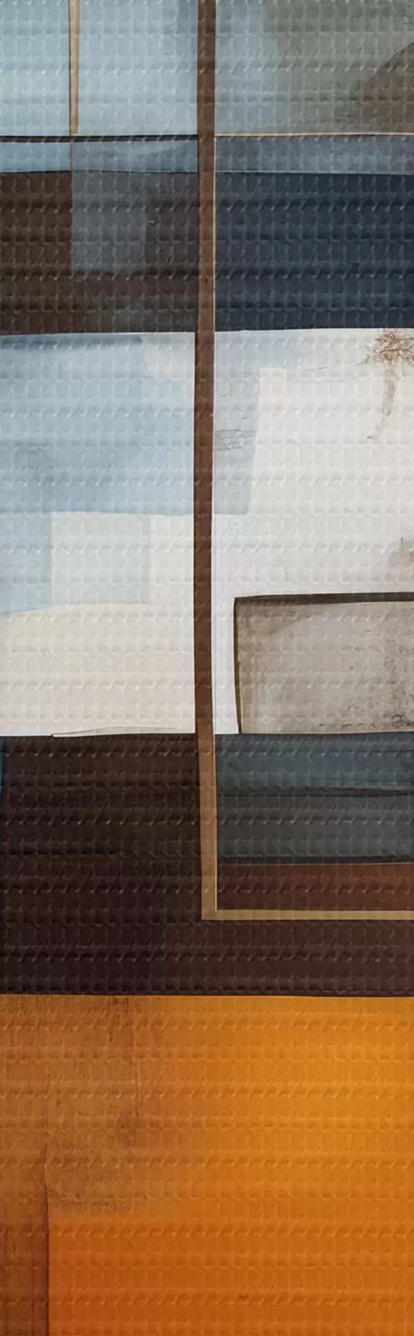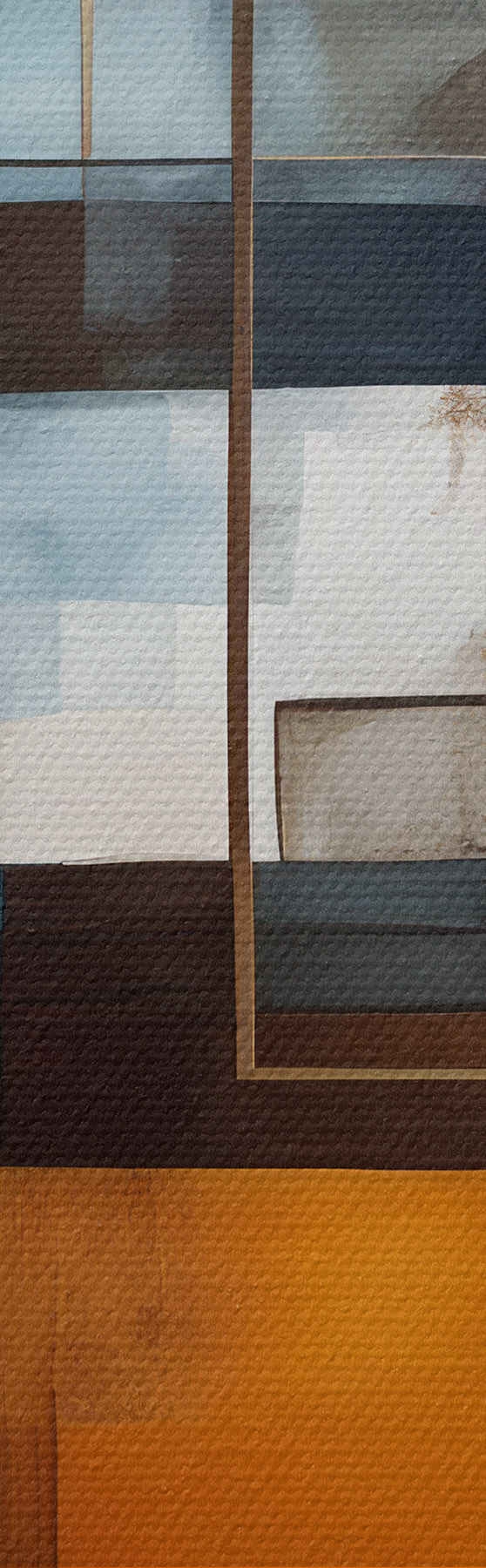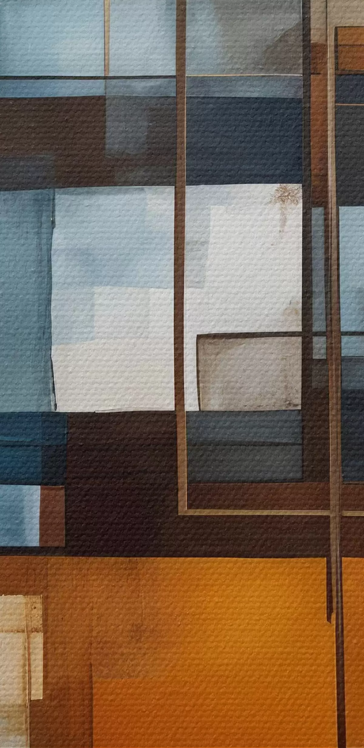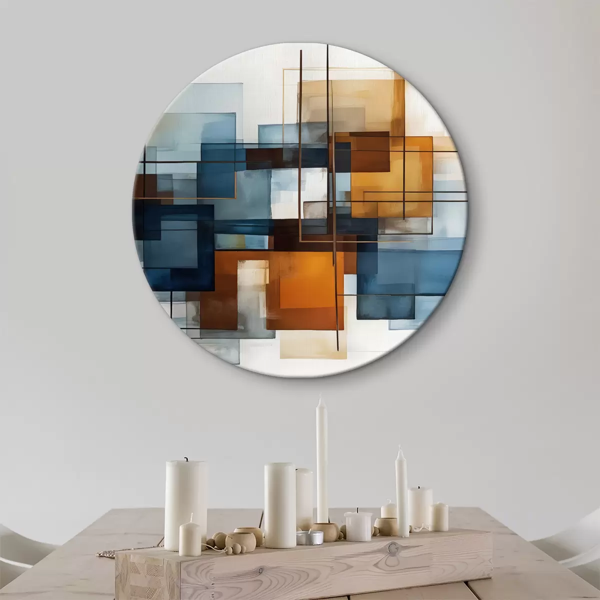 Kép A kék, narancssárga és barna árnyalatú absztrakt geometriai formák modern, minimalista kompozíciót alkotnak. Nr r40563