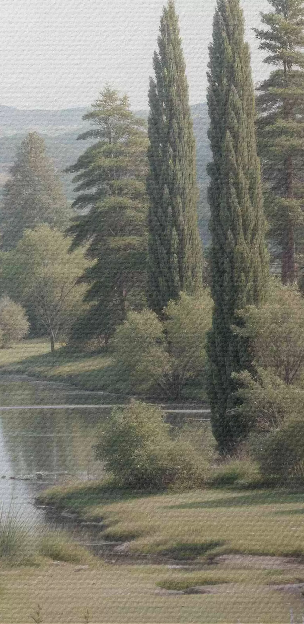 Kép Békés táj, csendes tóval, fenyőfákkal, ciprusfákkal és egyéb buja növényzettel körülvéve Nr r40579