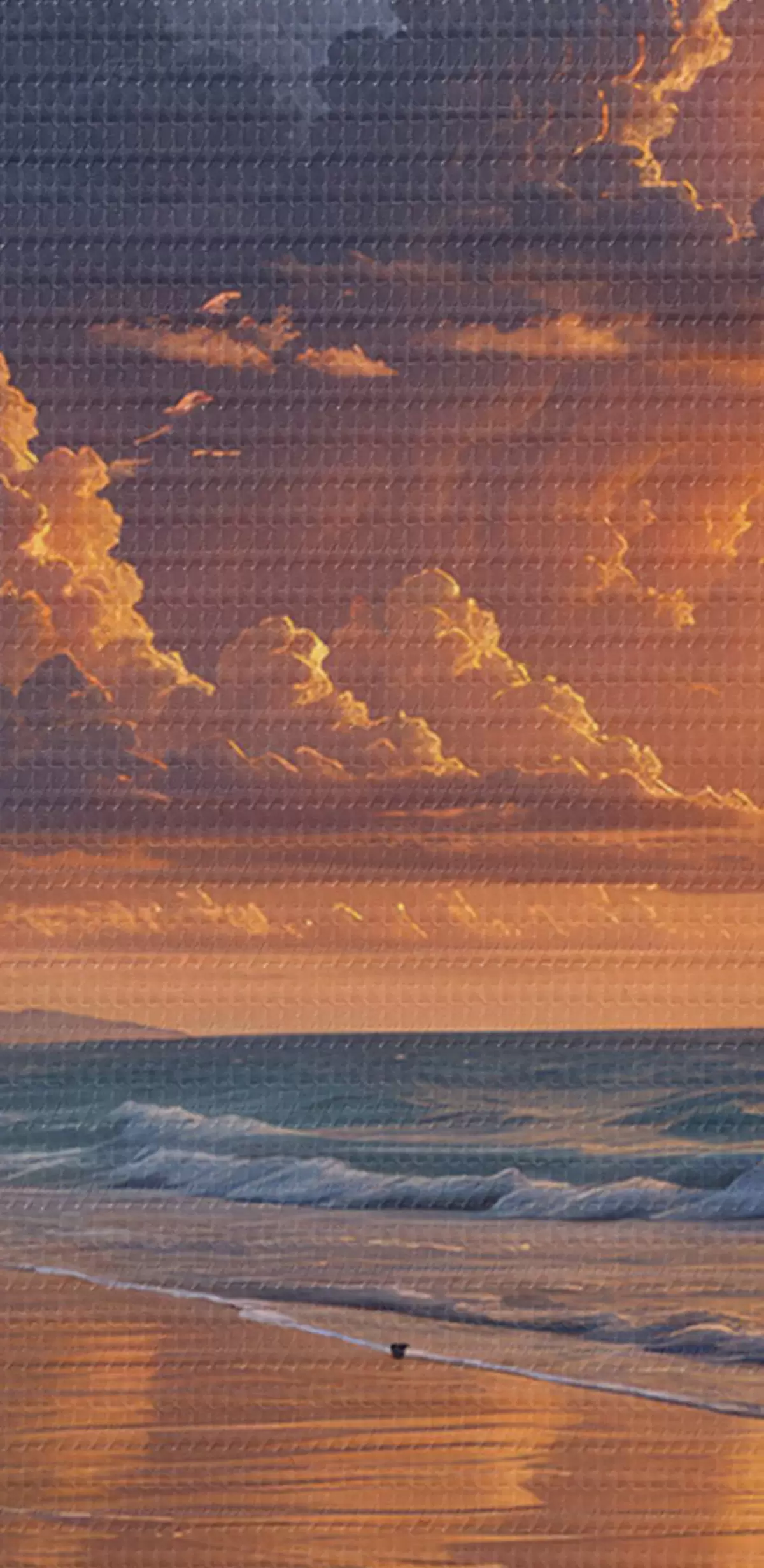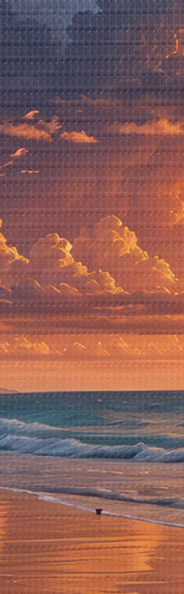 Kép Drámai naplemente egy trópusi strand felett, a nyugodt vízben tükröződő narancssárga és rózsaszín felhőkkel Nr r40599