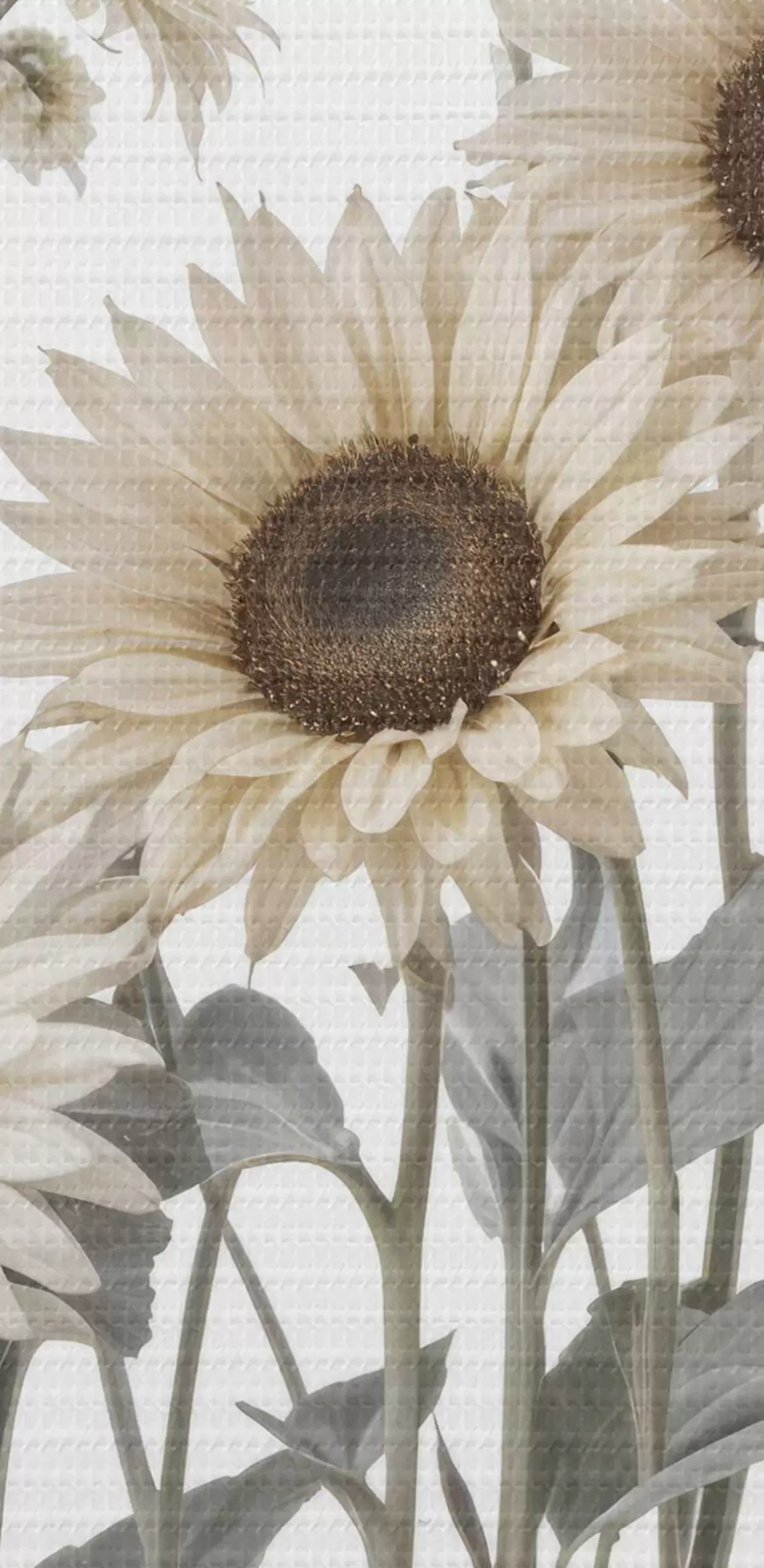 Kép Fehér mező fehér százszorszép virágokkal fehér háttéren, a háttérben napraforgók láthatóak Nr r40602