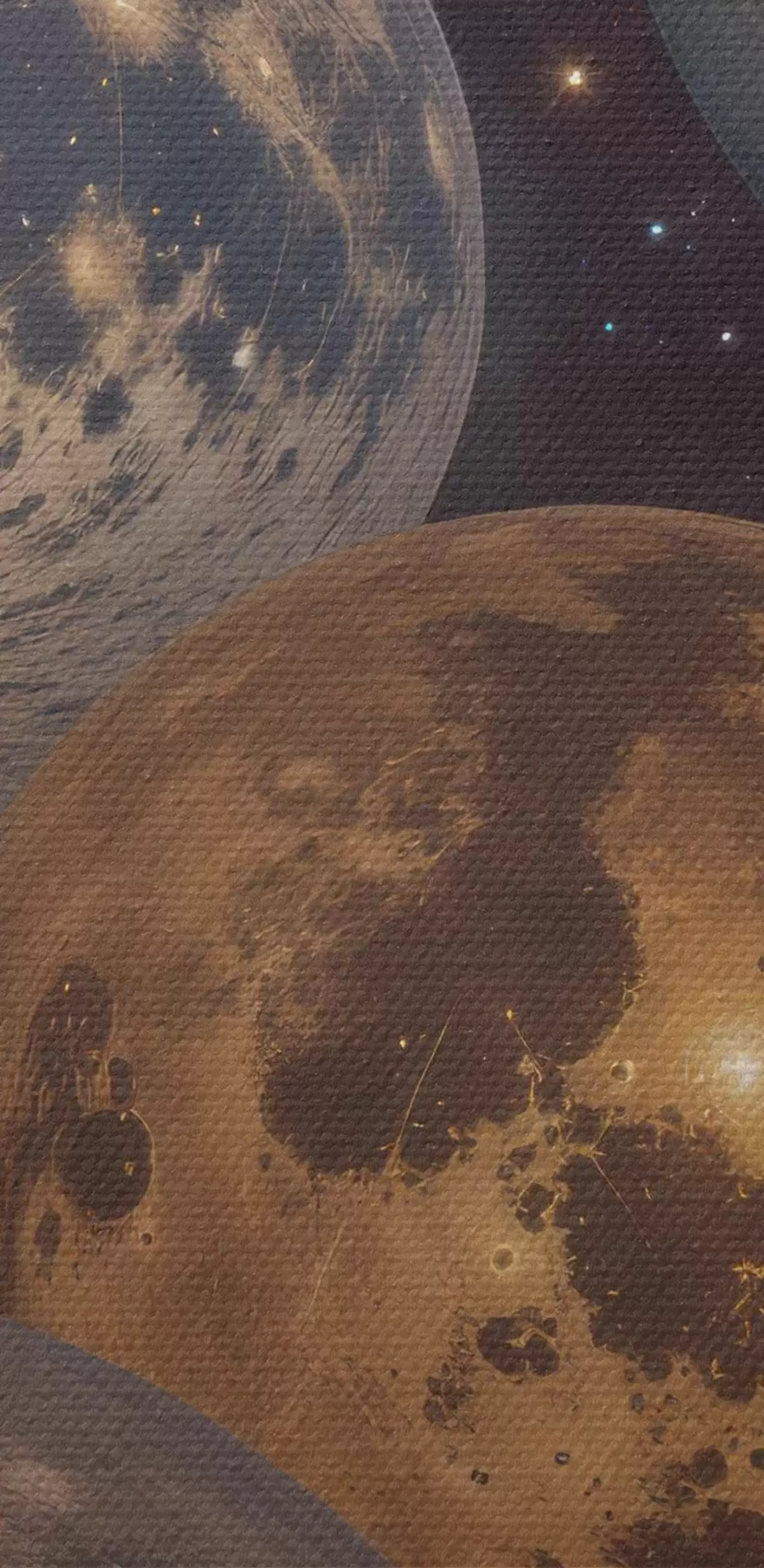 Kép Absztrakt űrnyomat színes bolygókkal és holdakkal, amelyek a csillagos égbolton lebegnek Nr r40607
