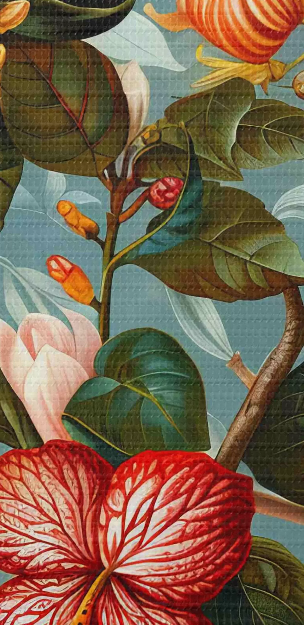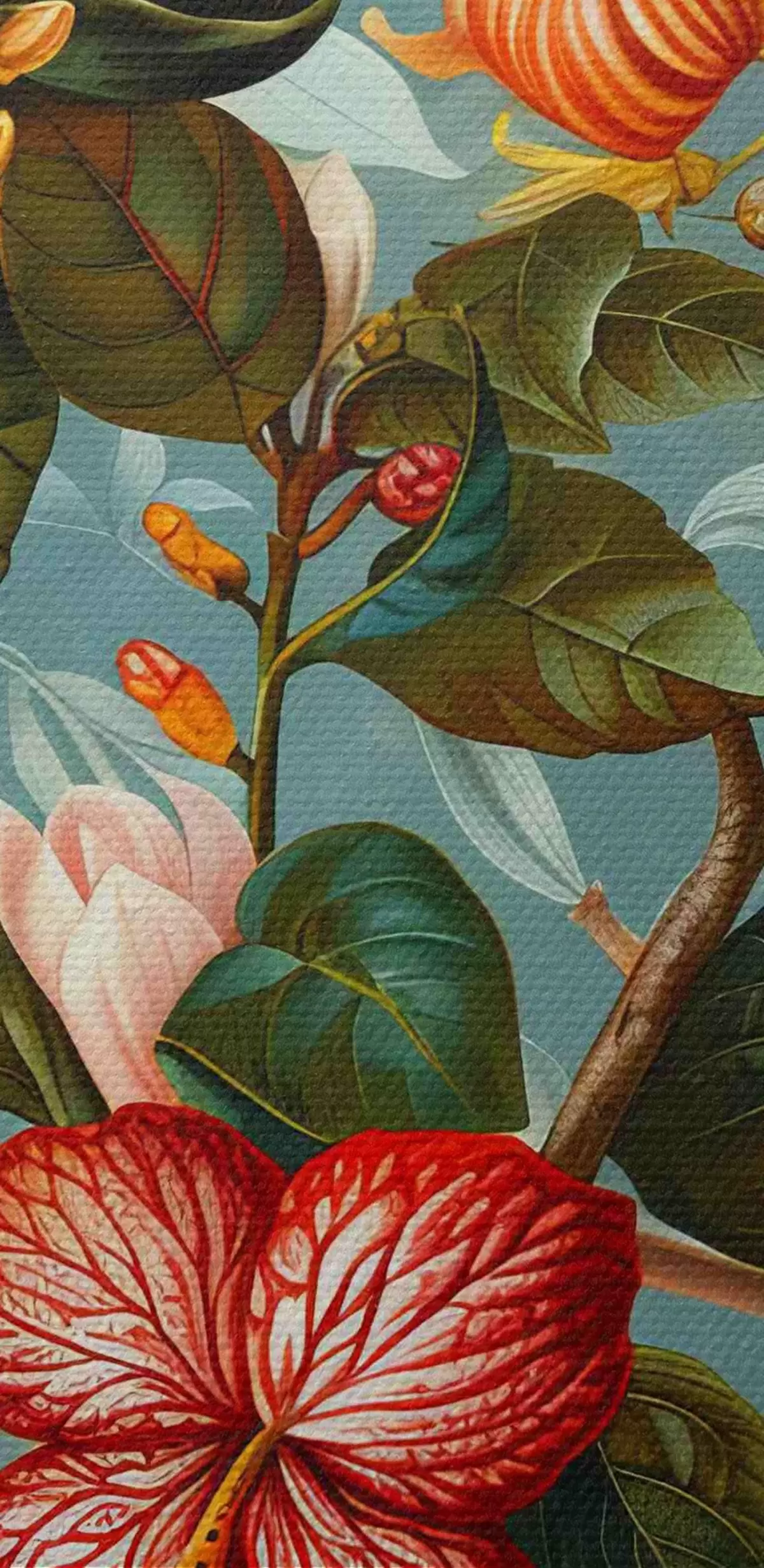 Kép Kompozíció különböző zöld és trópusi virágok kék háttérrel Nr r40668