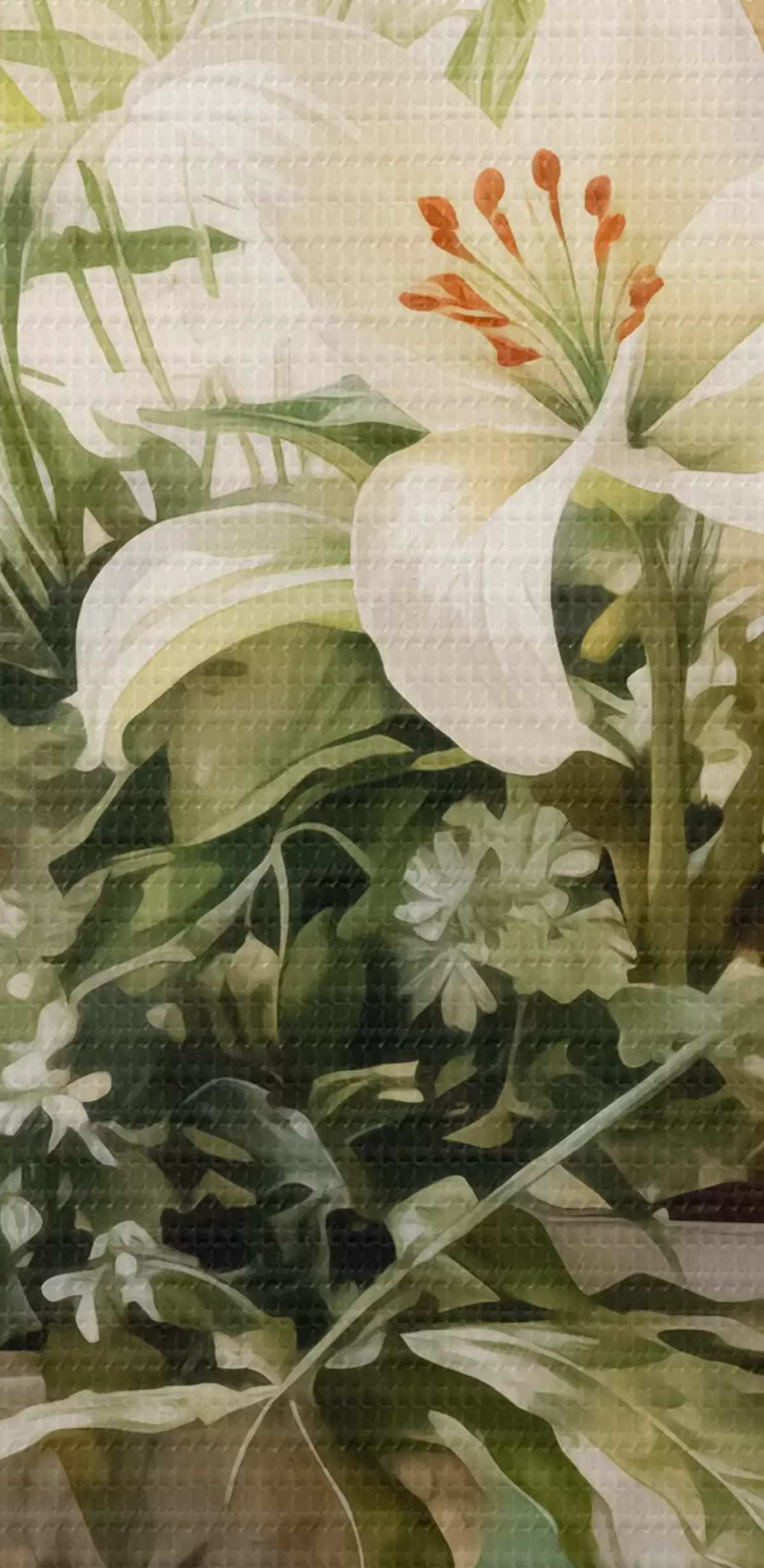 Kép Fehér liliom egy vázában az erkélyen, kilátással a tengerre és a hegyekre akvarell Nr r40682