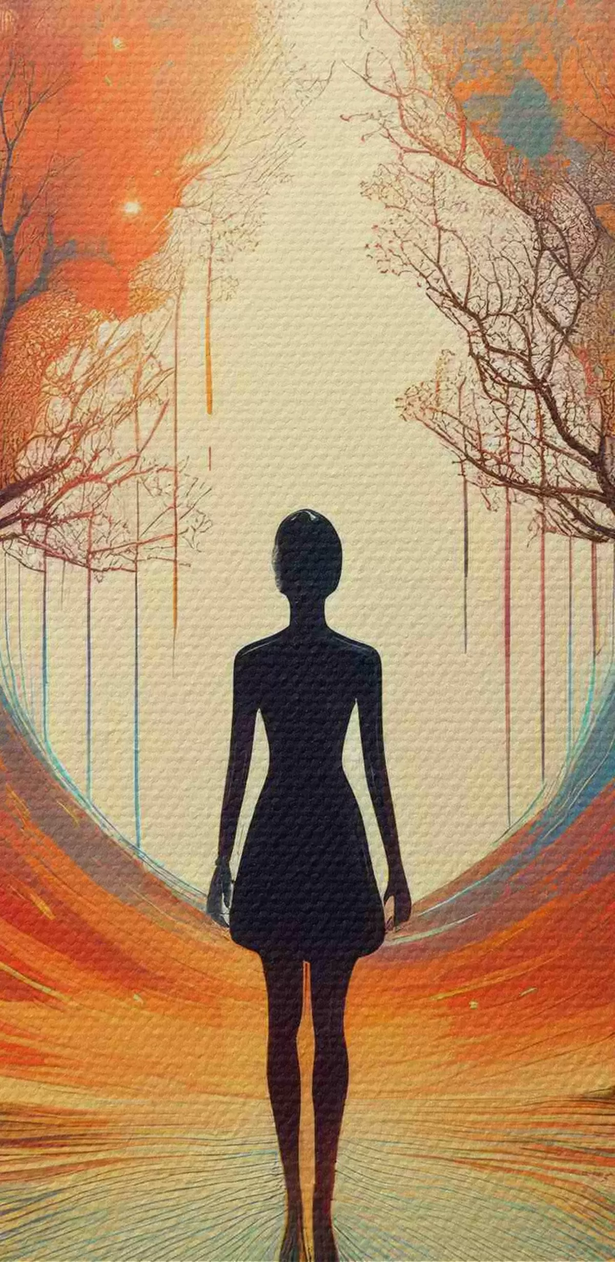 Kép sziluett a fák között, önismeret, önreflexió Nr r40713