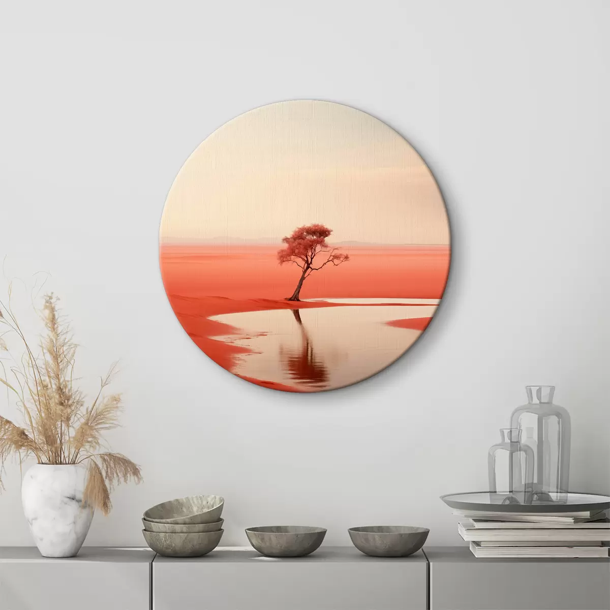 Kép Minimalista fa tájkép a folyó mellett, piros, szürke színben Nr r40722