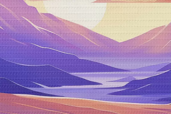 Kép Lila naplemente a hegyekben, folyó, fák, kis ház Nr r40949