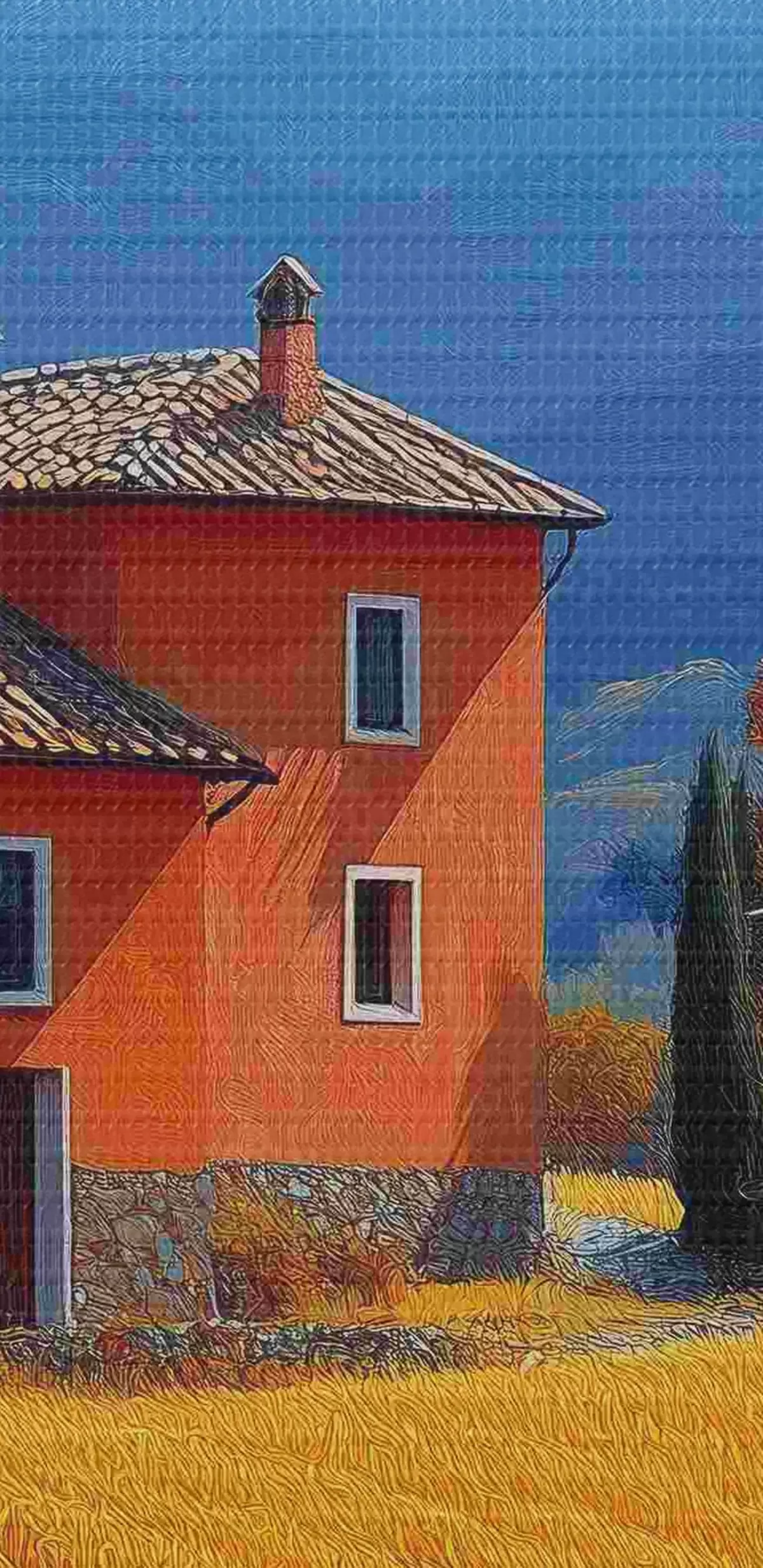 Kép Egy házikó egy mezőn, a háttérben őszi hegyekkel Nr r40962