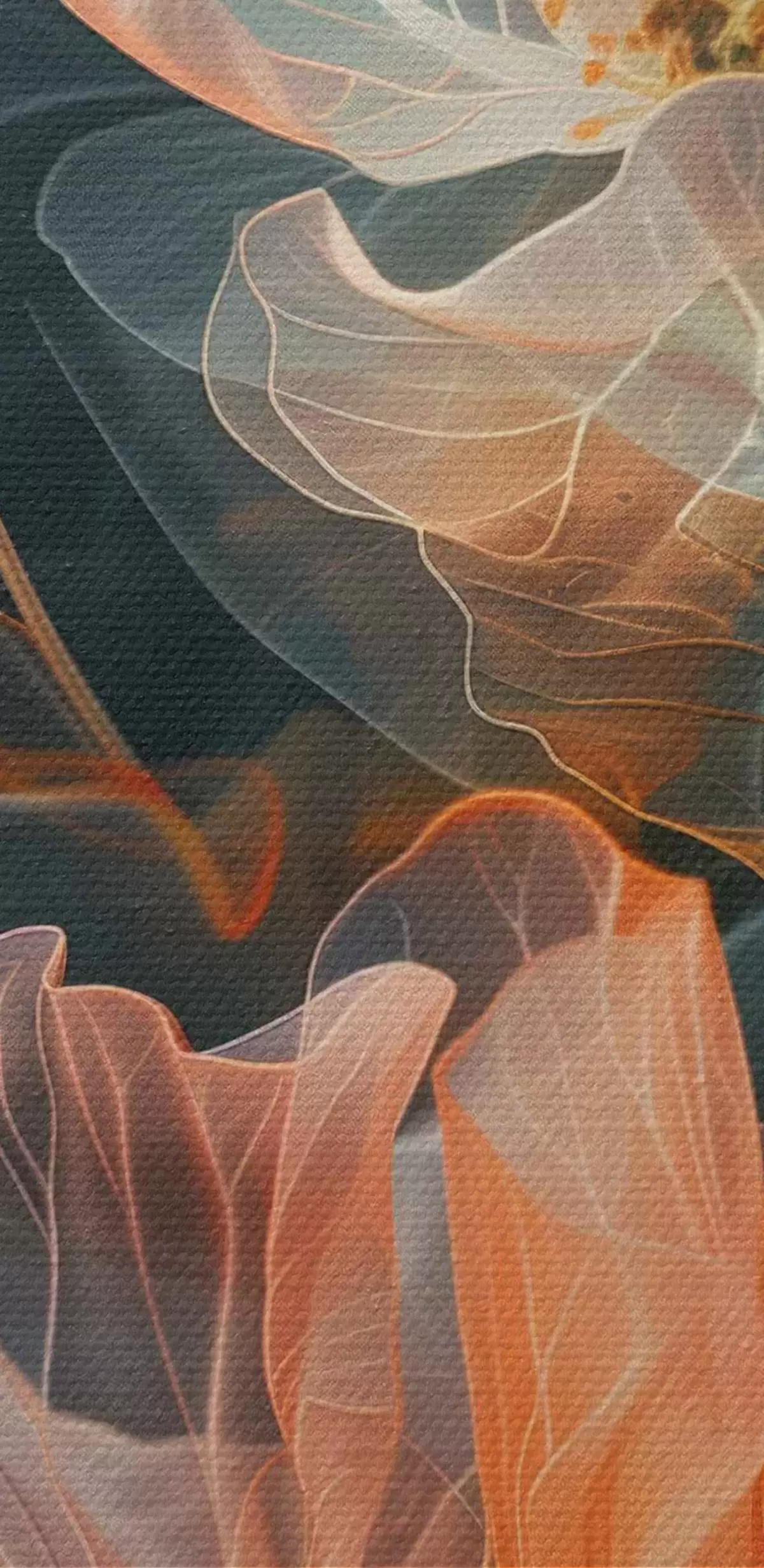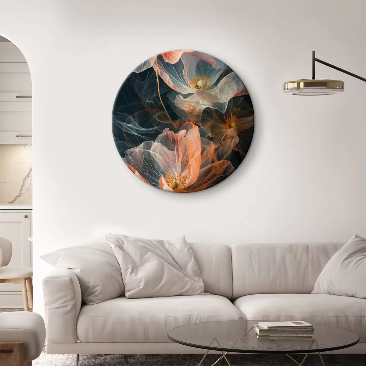 Kép Fényes, áttetsző virágok füstbe burkolózva sötét háttéren Nr r40968
