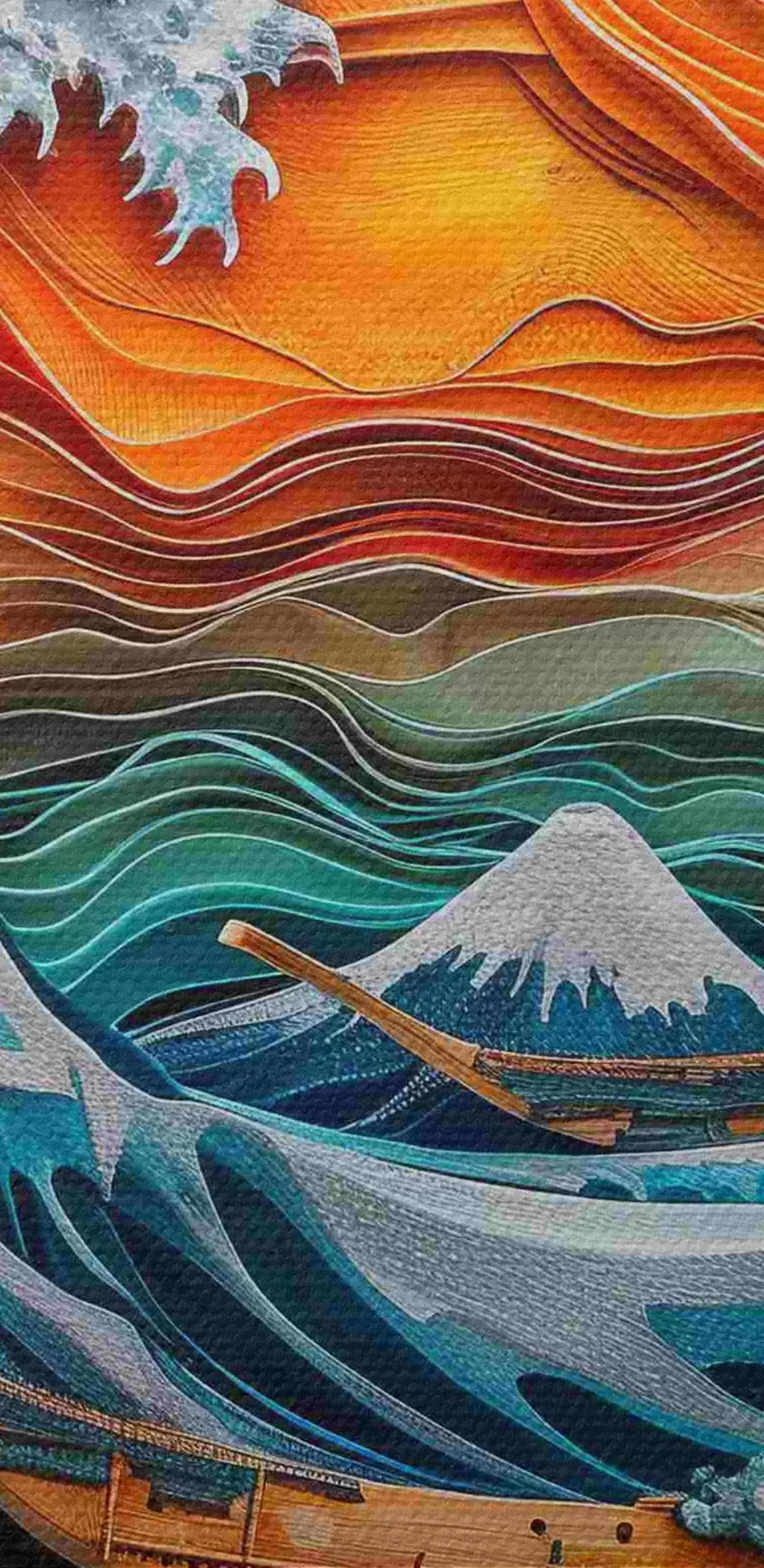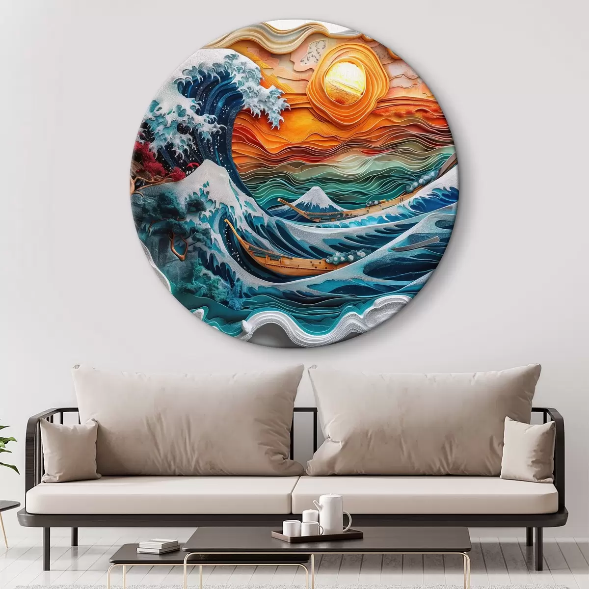 Kép Egy dombormű utánzata: tomboló óceán hajókkal és a napfénnyel Nr r40976