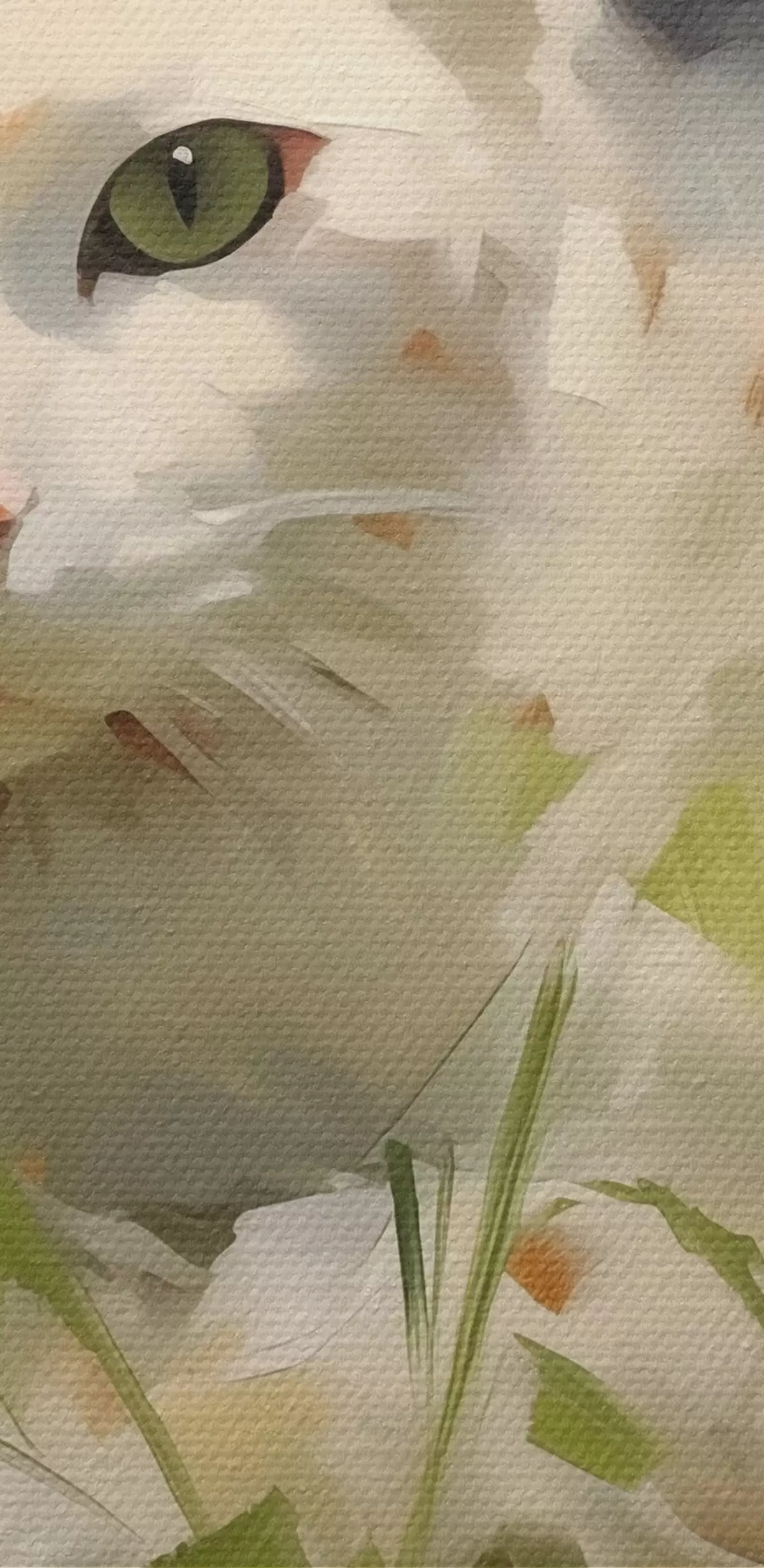 Kép Fehér macska fekszik a fűben, ecsetvonások utánzata Nr r41017