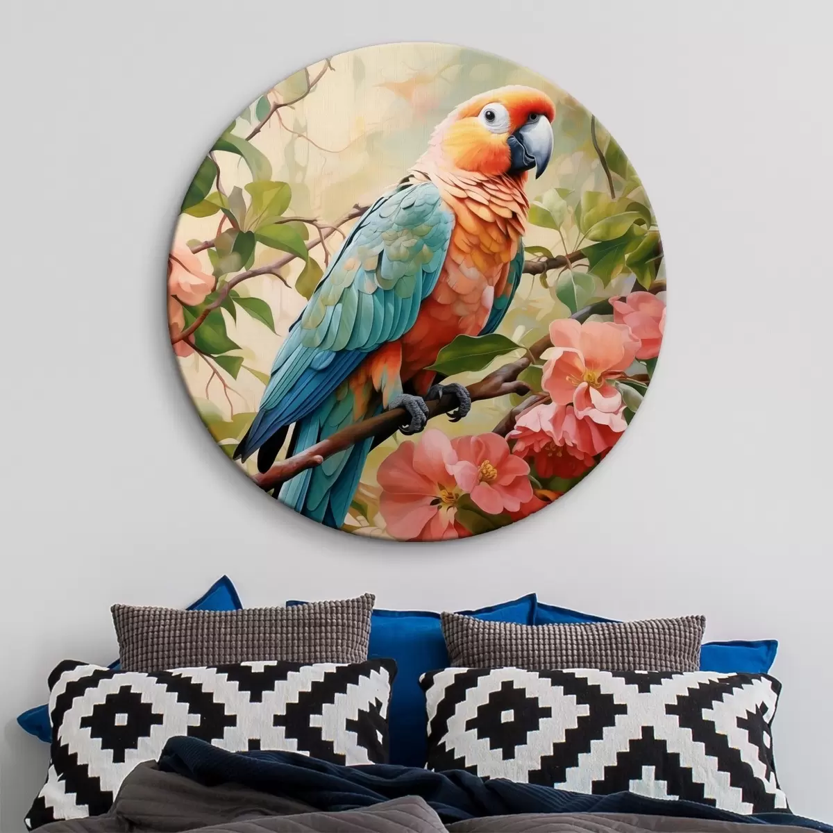 Kép Fürtös papagáj ül egy rózsaszín virágos ágon Nr r41018