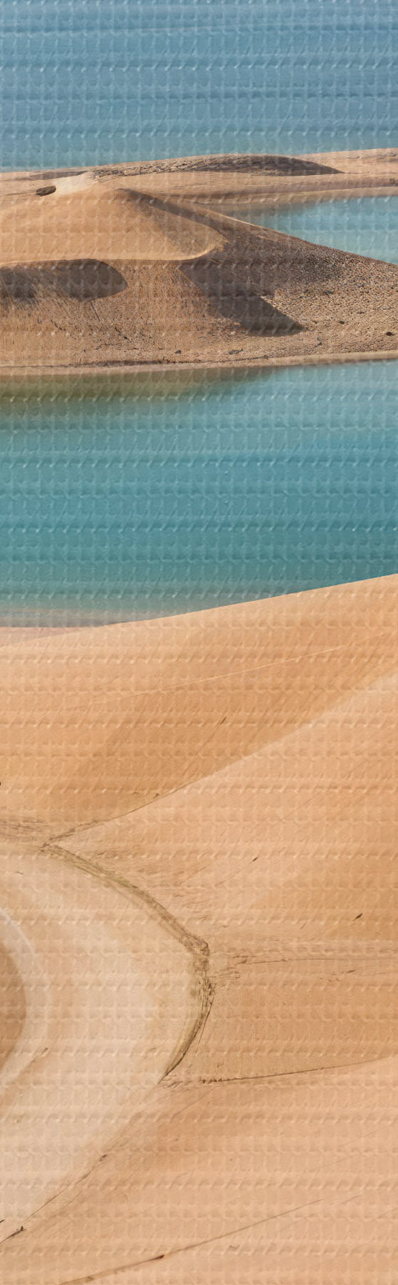 Kép Hatalmas sivatagi táj, gördülő dűnékkel és türkizkék tavakkal, melyet zord hegyek vesznek körül Nr r41087