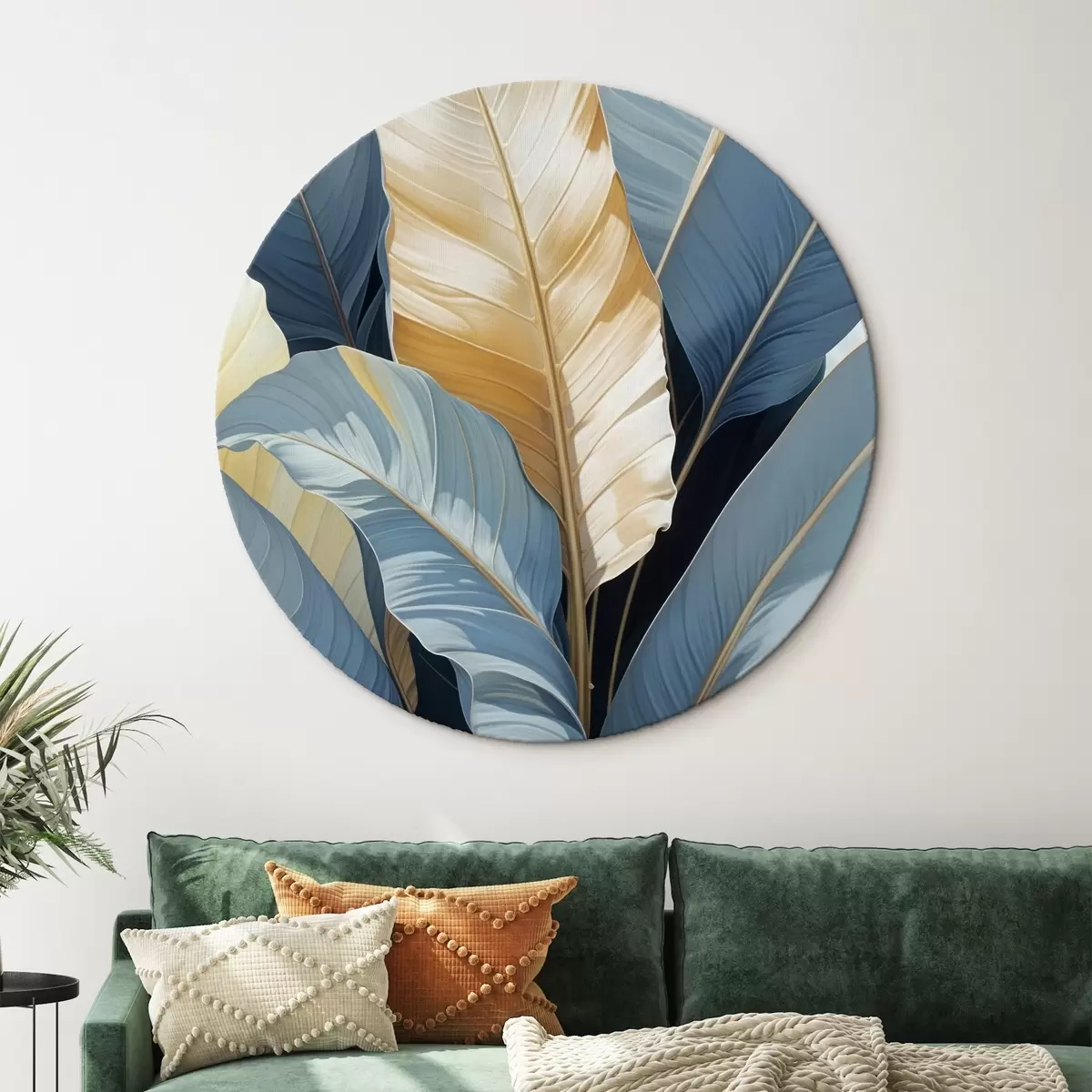 Kép Trópusi levelek kék és sárga árnyalatokkal, nagy pálma- vagy banánlevelek buja természetes háttérrel Nr r41097