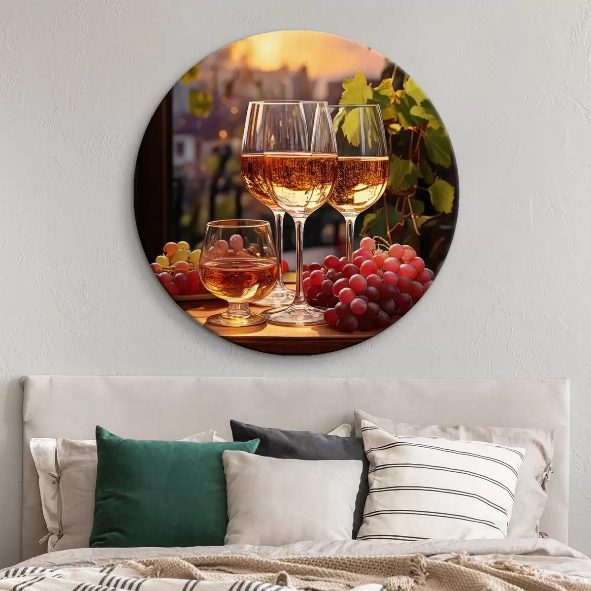 Kerek festmények poharak borral, szőlő az asztalon, csendélet r41104