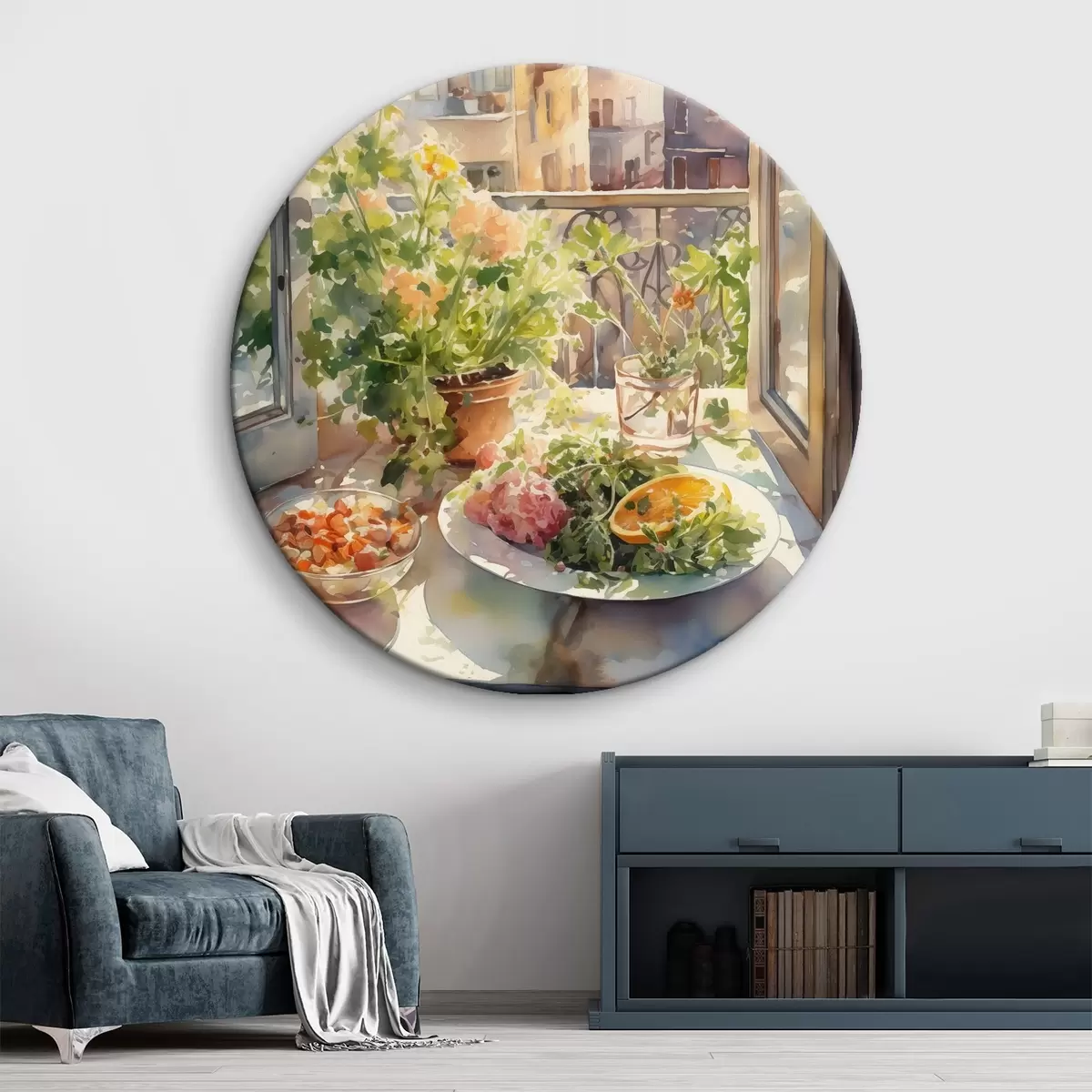 Kép Akvarell vacsora, városnézés, virágok, természet, zöld saláta Nr r41166