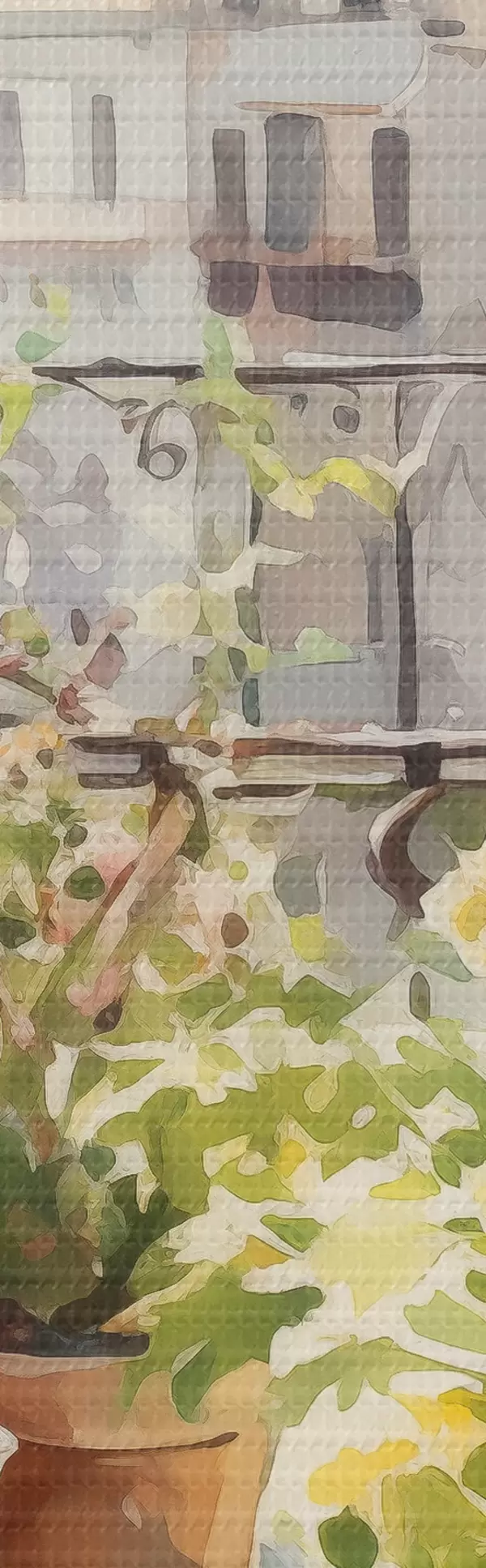 Kép Romantikus vacsora a városra néző kilátással, akvarell, virágok Nr r41168