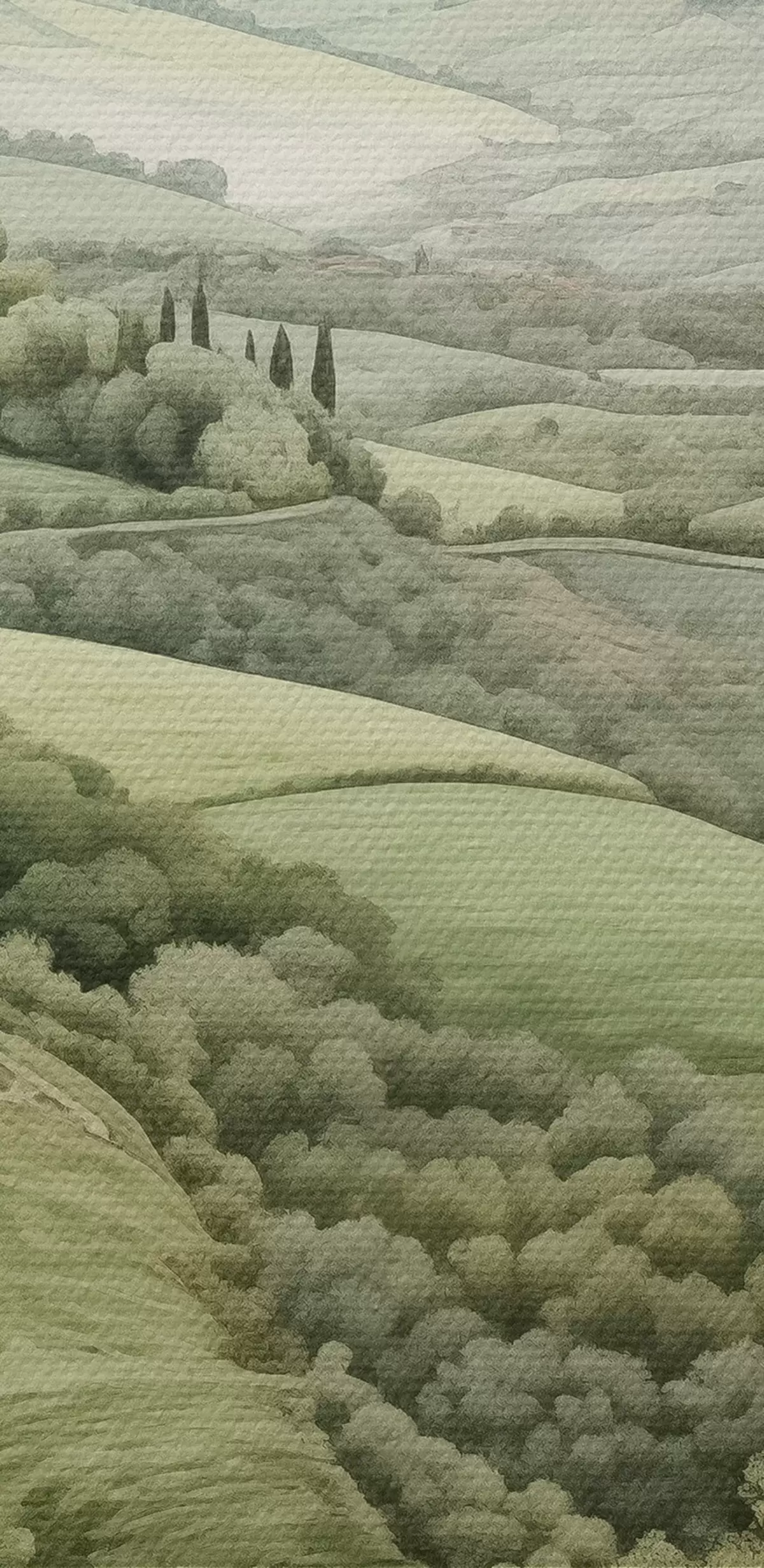 Kép Akvarell tájképek fákkal és hegyekkel, Toscana, nyár Nr r41222