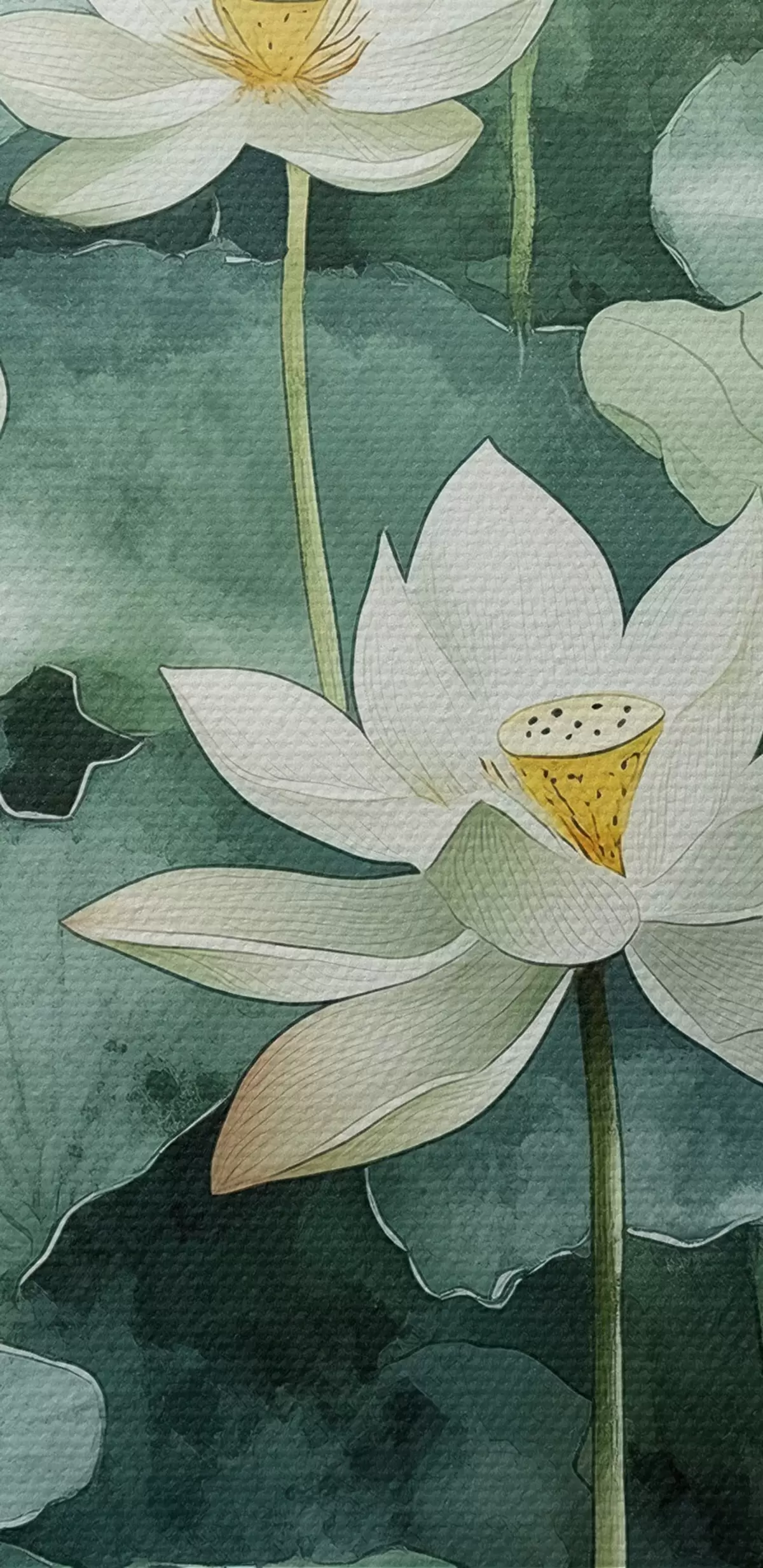 Kép Lótuszok a tóban, akvarell, zöld Nr r41228