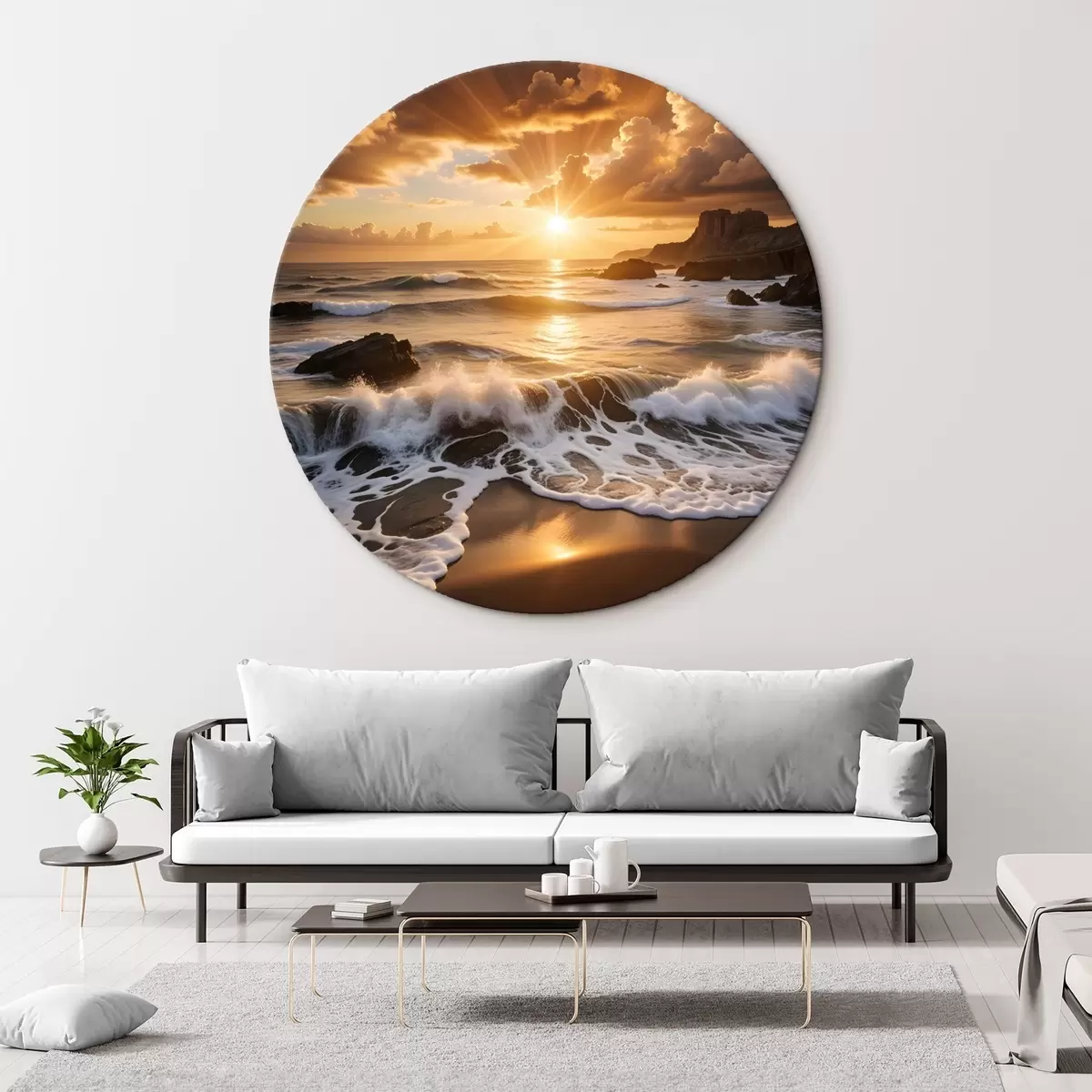 Kép Drámai naplemente a sziklás tengerparton, hullámok zúgásával és drámai felhőkkel az égen Nr r41245