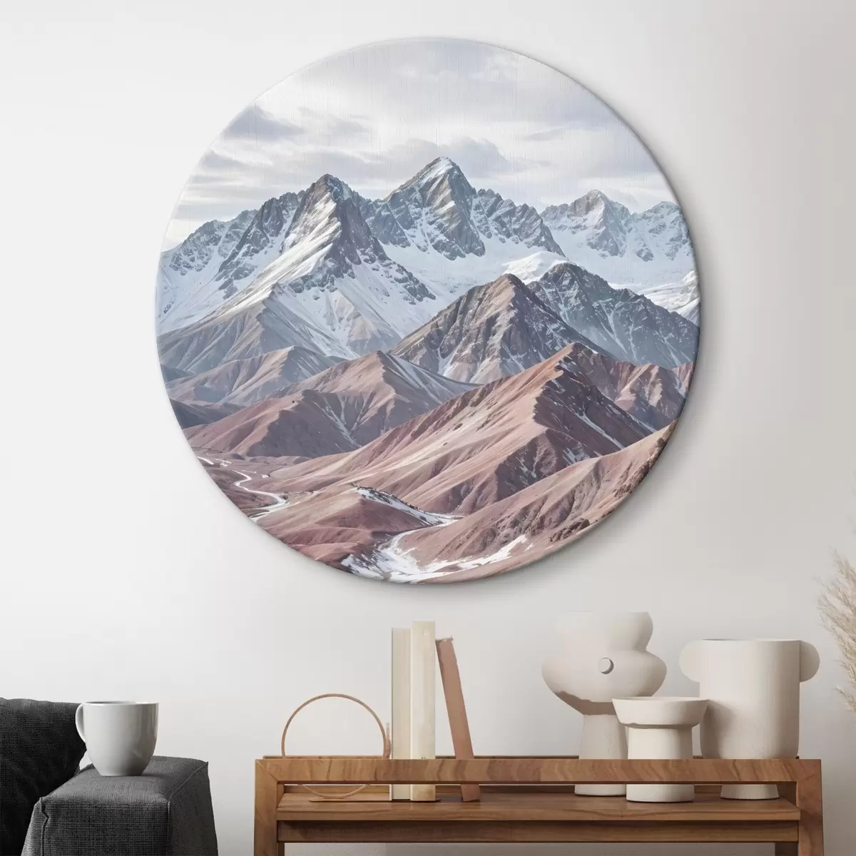 Kép Szikár, hófödte hegyek, egy kanyargós folyó, amely egy hatalmas, színes tájon folyik keresztül Nr r41262