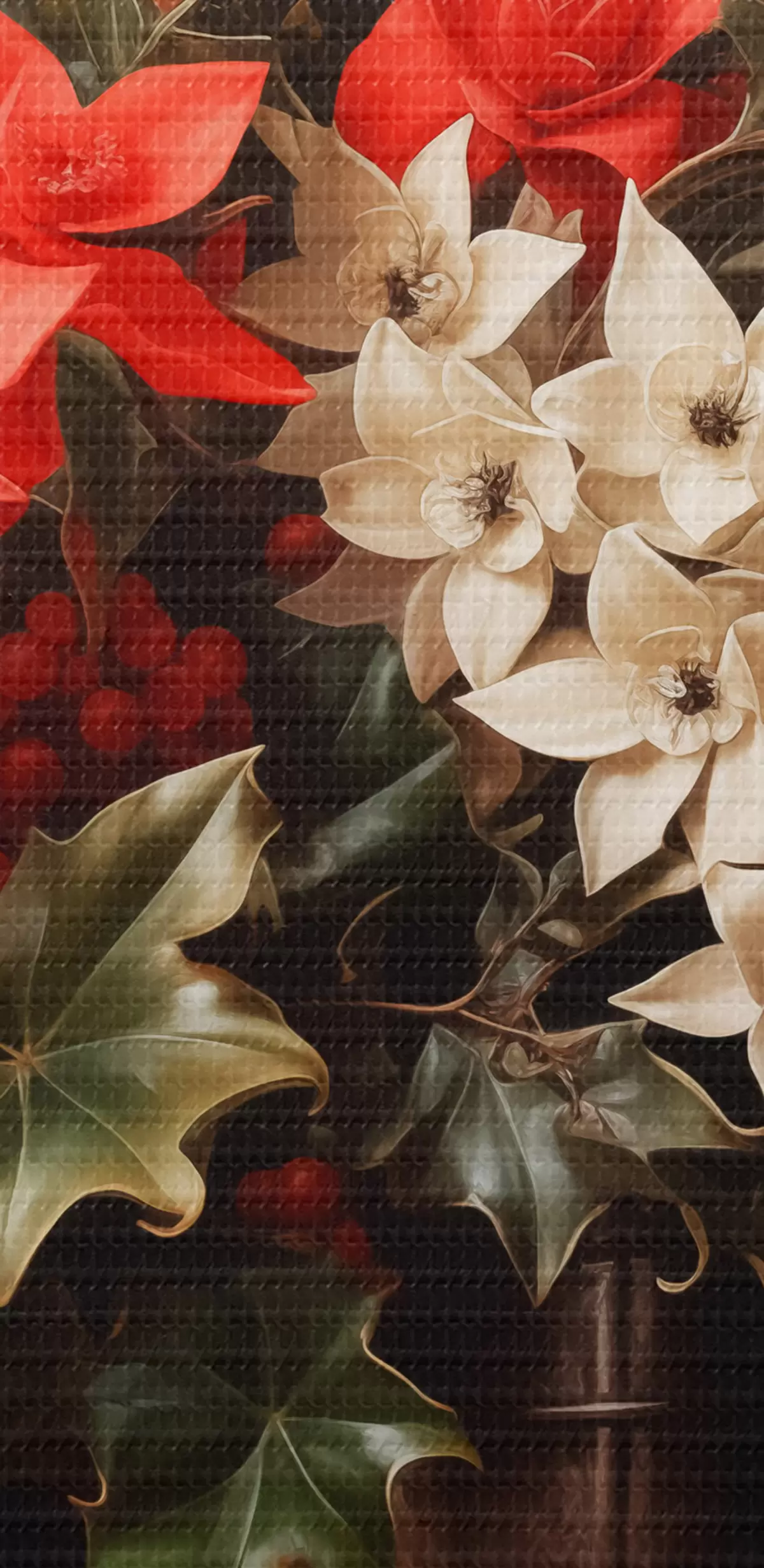 Kép Csokor magyal és karácsonyi virágok sötét háttérrel Nr r41272